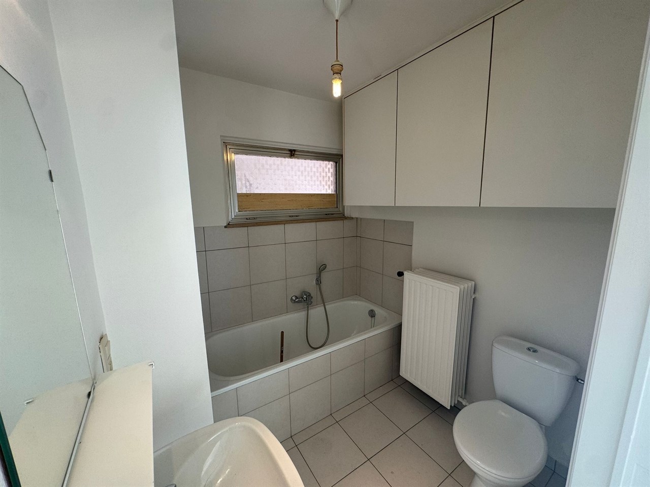 Het appartement beschikt over een inkomhal die toegang geeft tot een aangename leefruimte met open keuken. Verder is er een praktische berging met CV-ketel, een badkamer en twee slaapkamers. Eén van de slaapkamers is uitgerust met een grote kast waarin zich de aansluitingen voor wasmachine en droogkast bevinden. Tot slot is er een garage inbegrepen, wat een extra troef vormt in deze buurt.