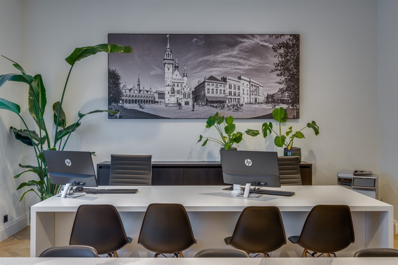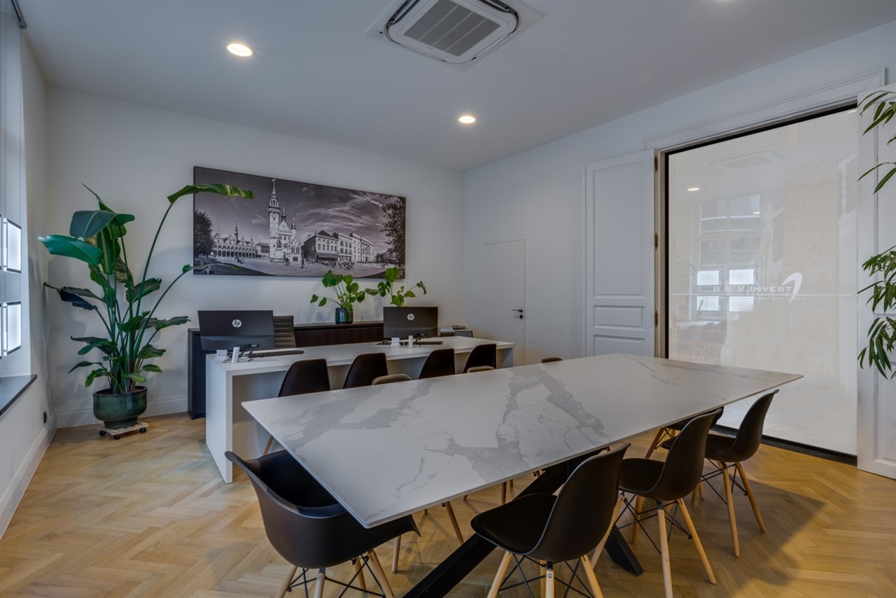 Aan de rechterzijde van de inkomhal is bovendien een tweede, groter kantoor beschikbaar voor 1350 euro per maand, eveneens inclusief gemeenschappelijke kosten, wat bijkomende mogelijkheden biedt voor wie meer ruimte nodig heeft. Dit pand vormt een bijzonder aantrekkelijke keuze voor ondernemers die wensen te werken op een centrale, makkelijk bereikbare en commercieel sterke locatie in het hart van Aalst.