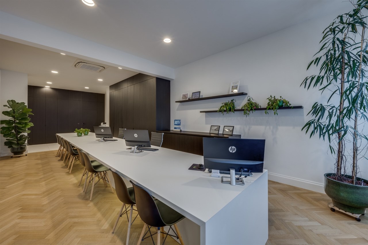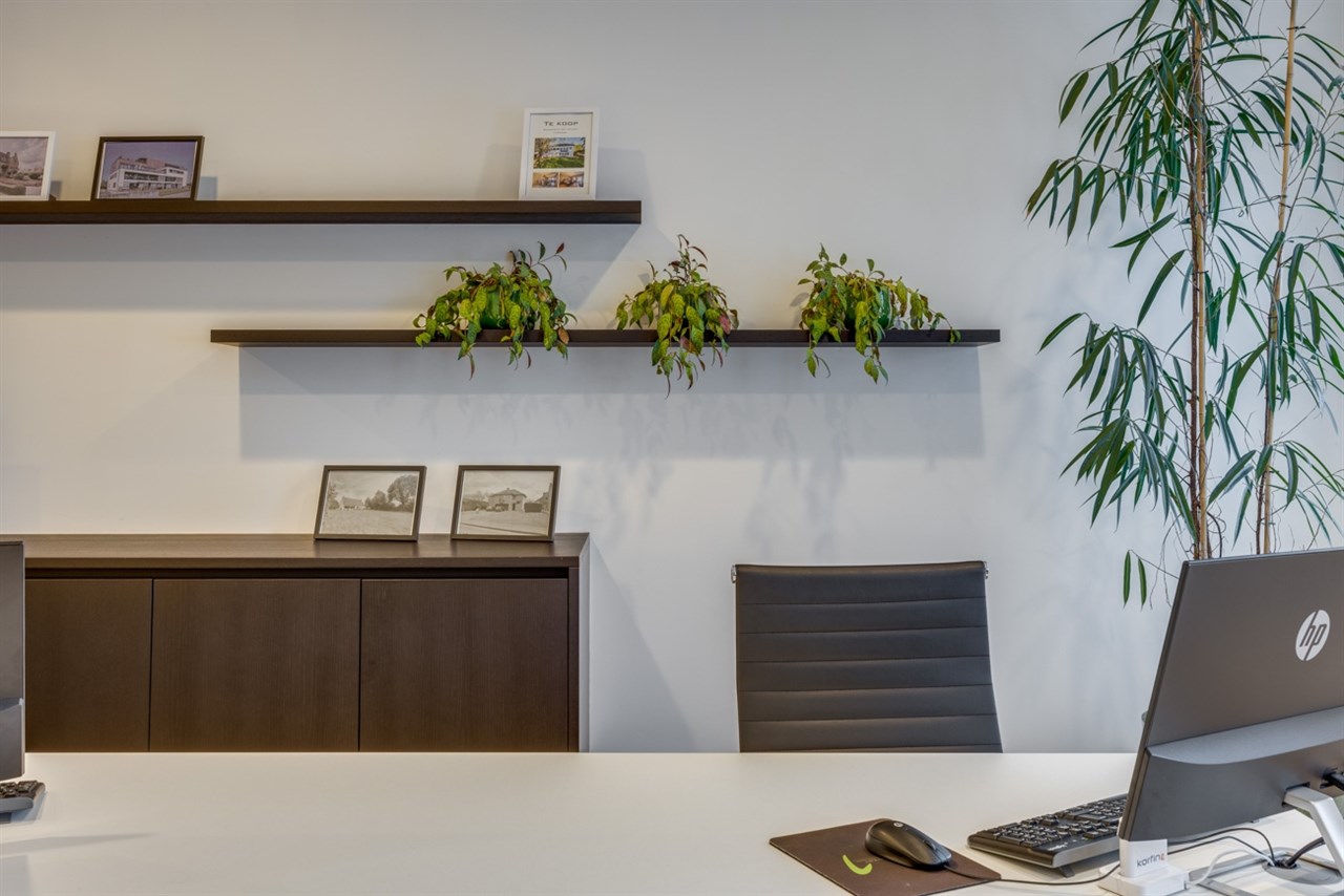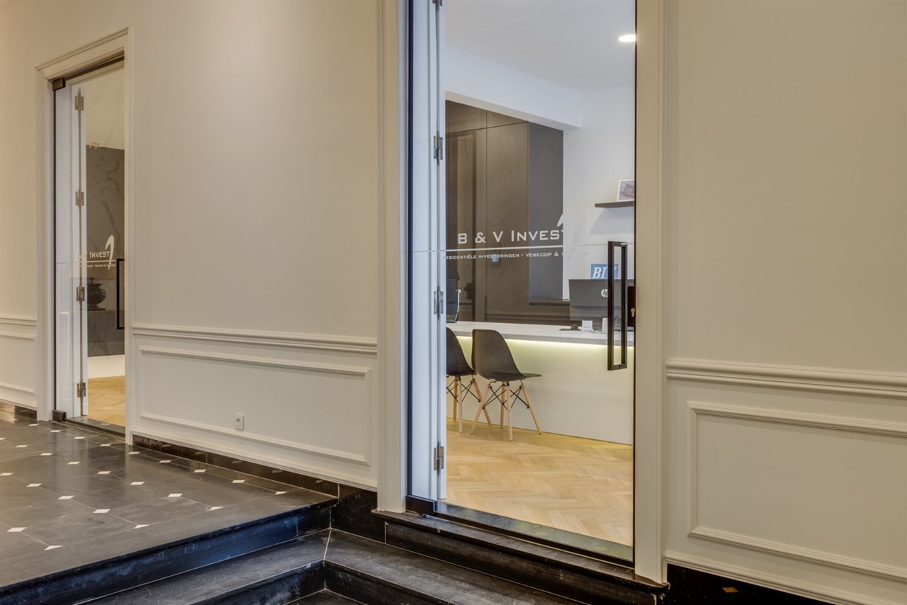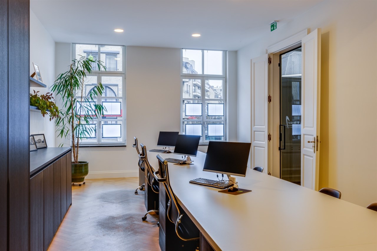 Deze handels- of kantoorruimte bevindt zich rechts van de statige inkomhal op Keizersplein 21 in Aalst en profiteert van een sterke zichtbaarheid dankzij de ligging langs de drukke wandelroute tussen het winkelcentrum en de Keizershallenparking. De moderne inkom met zwart gelakte stalen deuren en glas geeft het pand een uitnodigende en hedendaagse uitstraling die perfect aansluit bij de commerciële omgeving. De ruimte omvat ongeveer 53 vierkante meter en biedt een functionele en aangename indeling met een praktische keuken, een afzonderlijk toilet en veel ingemaakte kastruimte die een efficiënte organisatie van het werk ondersteunt. De klimaatregeling verloopt via airconditioning die zowel koelt als verwarmt, terwijl het toegangssysteem met badges zorgt voor een veilig en professioneel onthaal. De huurprijs bedraagt 1350 euro per maand en omvat een forfait voor de gemeenschappelijke kosten, en de huurwaarborg van drie maanden wordt geplaatst bij Korfine. Aan de linkerzijde van de inkomhal is bovendien een tweede, compactere kantoorruimte beschikbaar van circa 45 vierkante meter, die eveneens kan worden gehuurd en zo bijkomende mogelijkheden biedt voor ondernemers die een andere schaal of indeling wensen. Deze handelsruimte vormt een veelzijdige en aantrekkelijk gelegen keuze voor wie zoekt naar kwaliteit, zichtbaarheid en een centrale positie in het hart van Aalst.