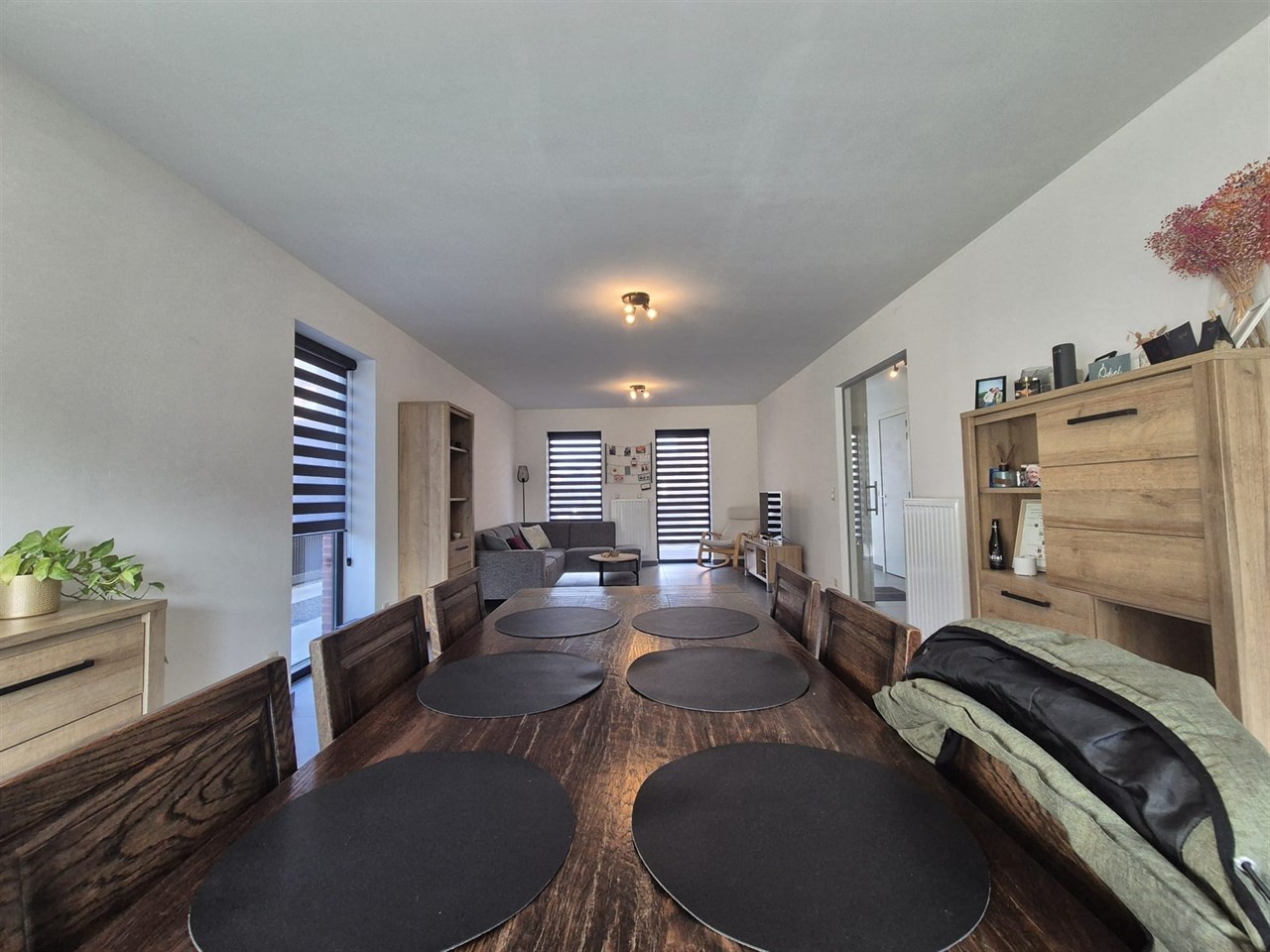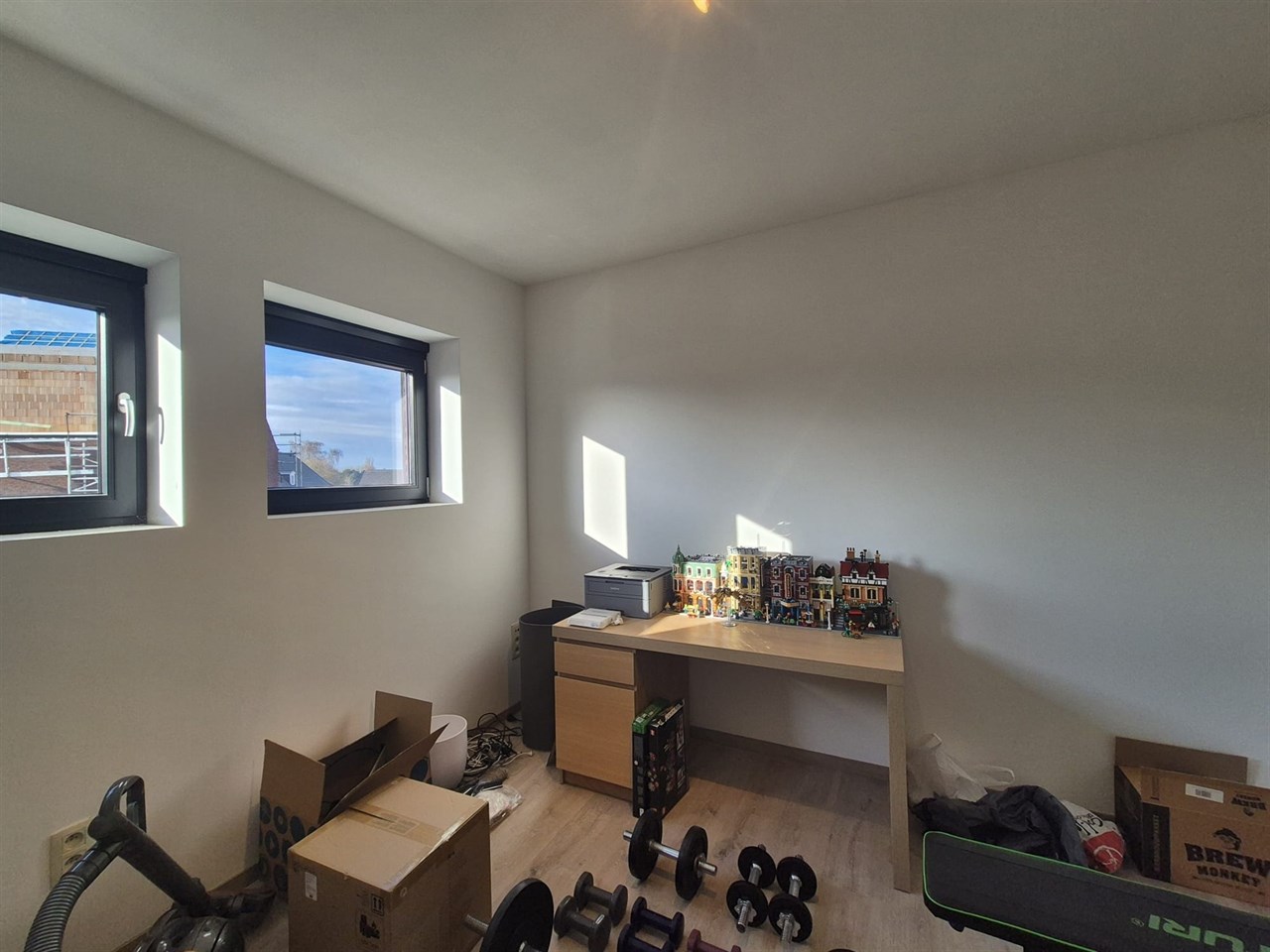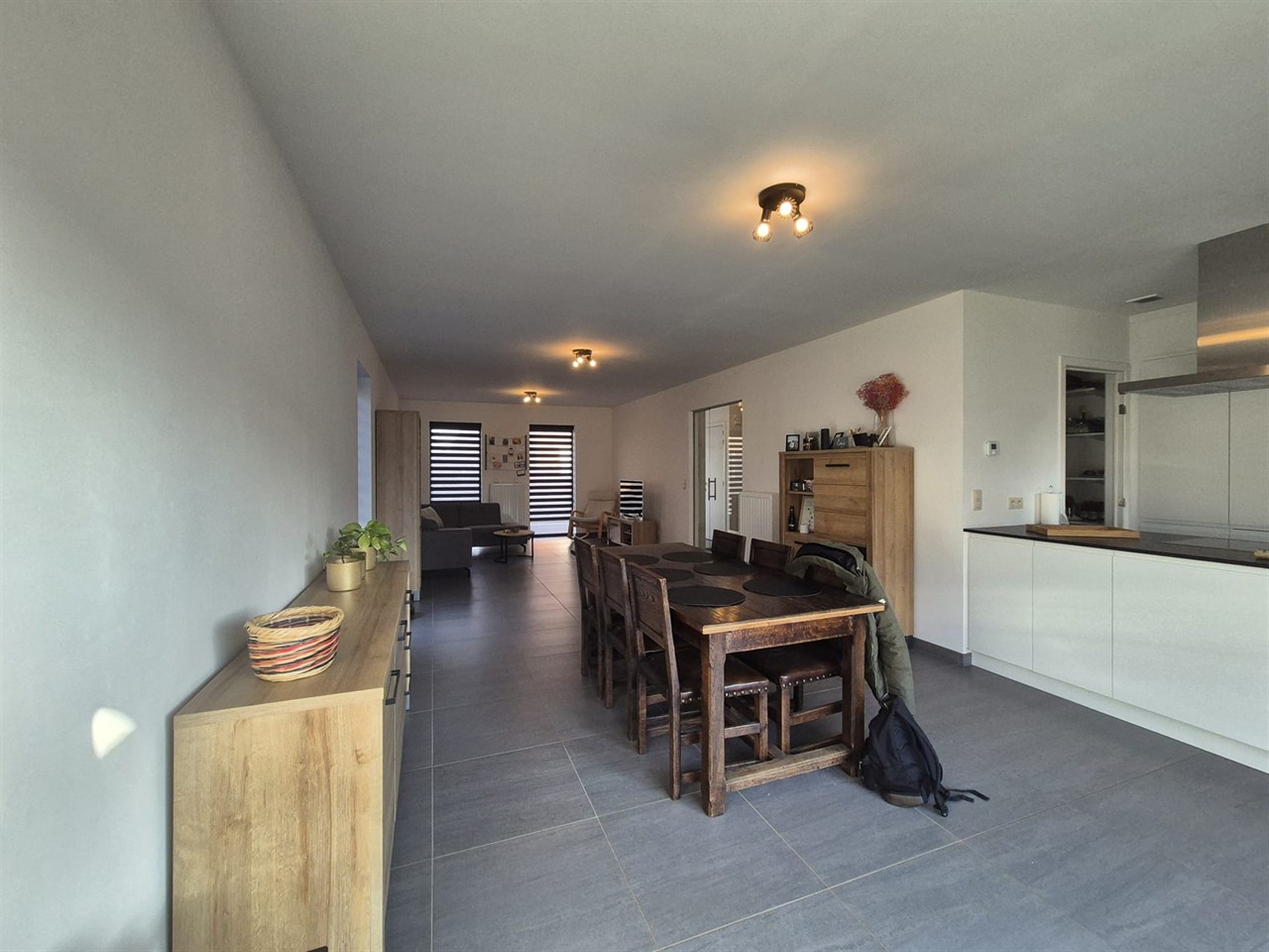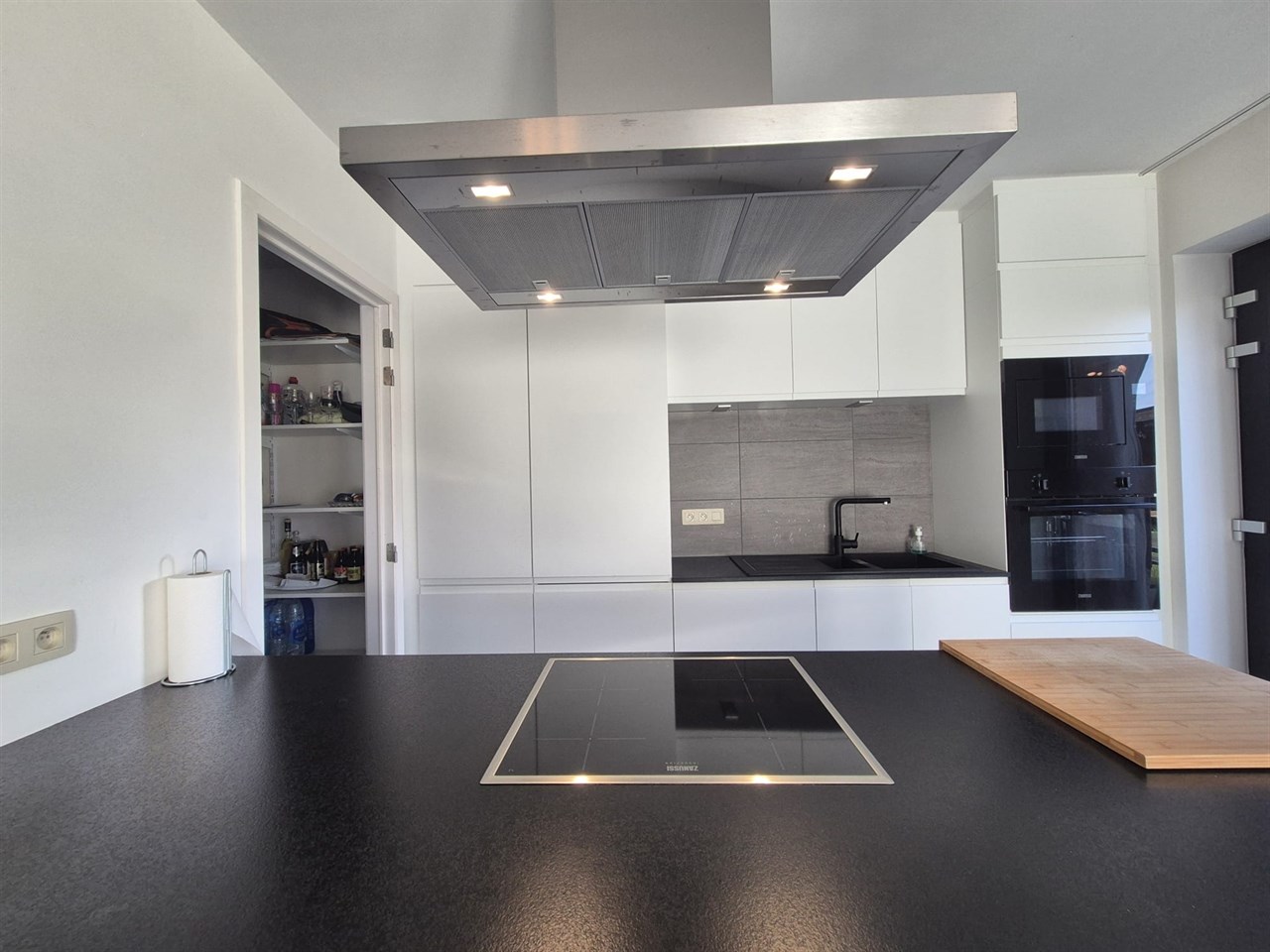De leefruimte sluit mooi aan op de open, moderne keuken met eiland, volledig uitgerust met alle nodige toestellen. Aansluitend is er een praktische berging en wasplaats.