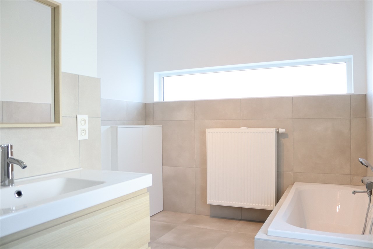 Gelijkvloers vinden we verder een bureauruimte / 1ste slaapkamer (12m²), een afzonderlijk toilet, wasplaats, badkamer voorzien van ligbad, meubel, 2de toilet en inloopdouche.