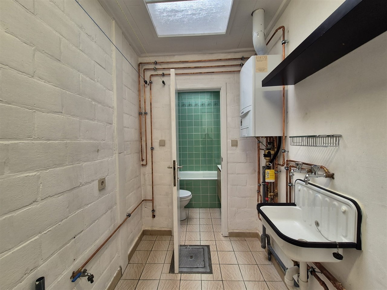 Aansluitend is er een wasplaats en een badkamer met bad, lavabo met meubel en toilet.