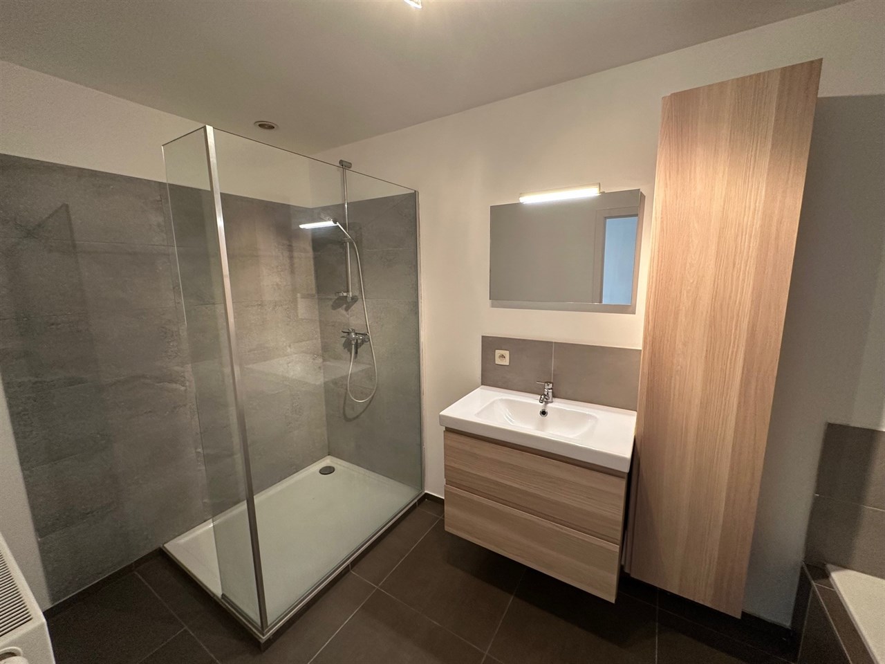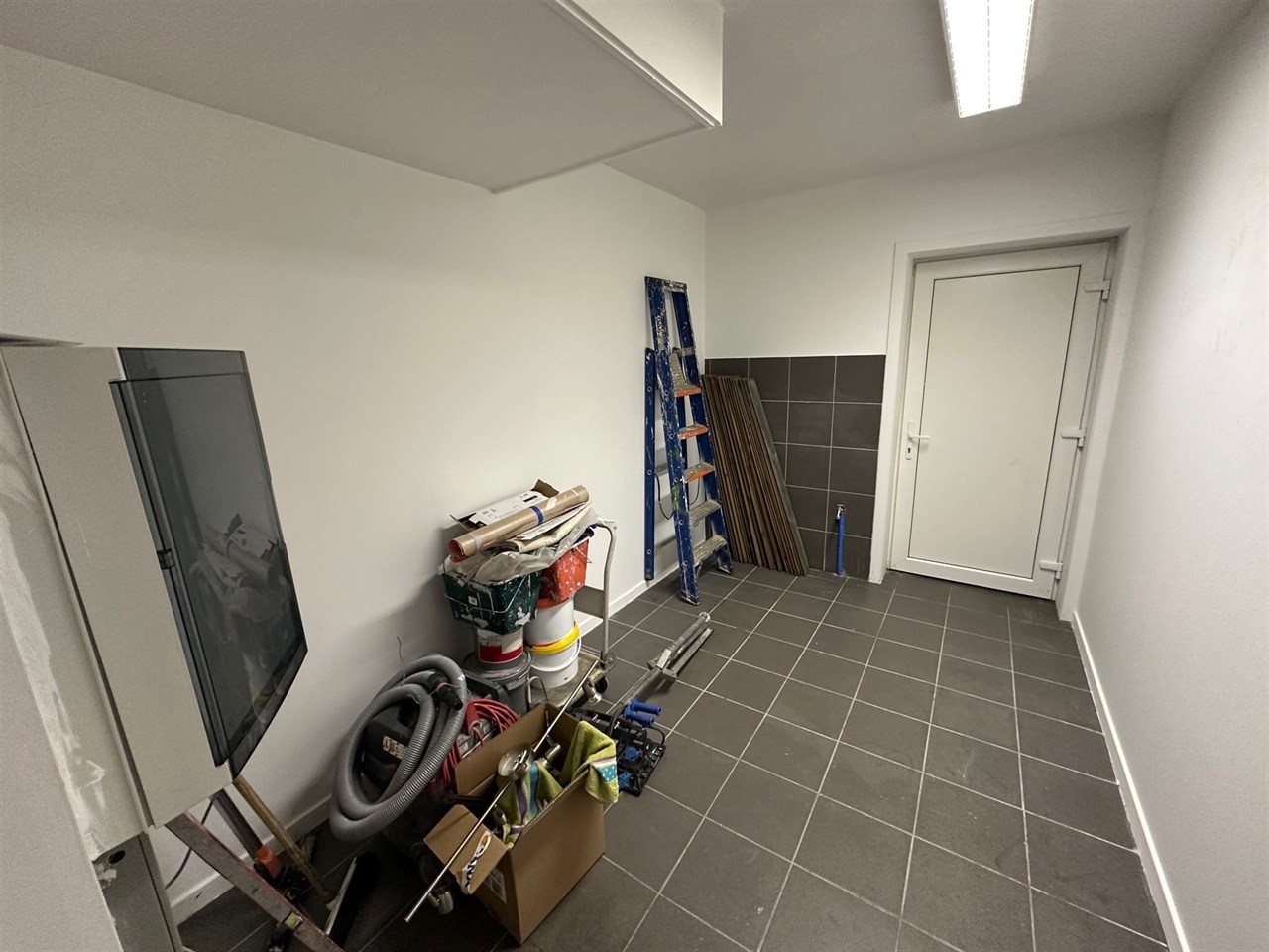 Het gelijkvloers omvat ongeveer 115 m² en beschikt over een ruime centrale kamer met keuken die ideaal is als bureel of opslagruimte. Daarnaast zijn er twee aparte bureel- of stockageruimtes, waardoor het pand verschillende professionele invullingen mogelijk maakt. Een apart toilet en een badkamer met ligbad, douche én wasgelegenheid bieden bijkomend comfort, onder meer voor wie bijvoorbeeld met de fiets naar het werk komt. Twee bergingen zorgen tenslotte voor extra praktische opbergmogelijkheden.
