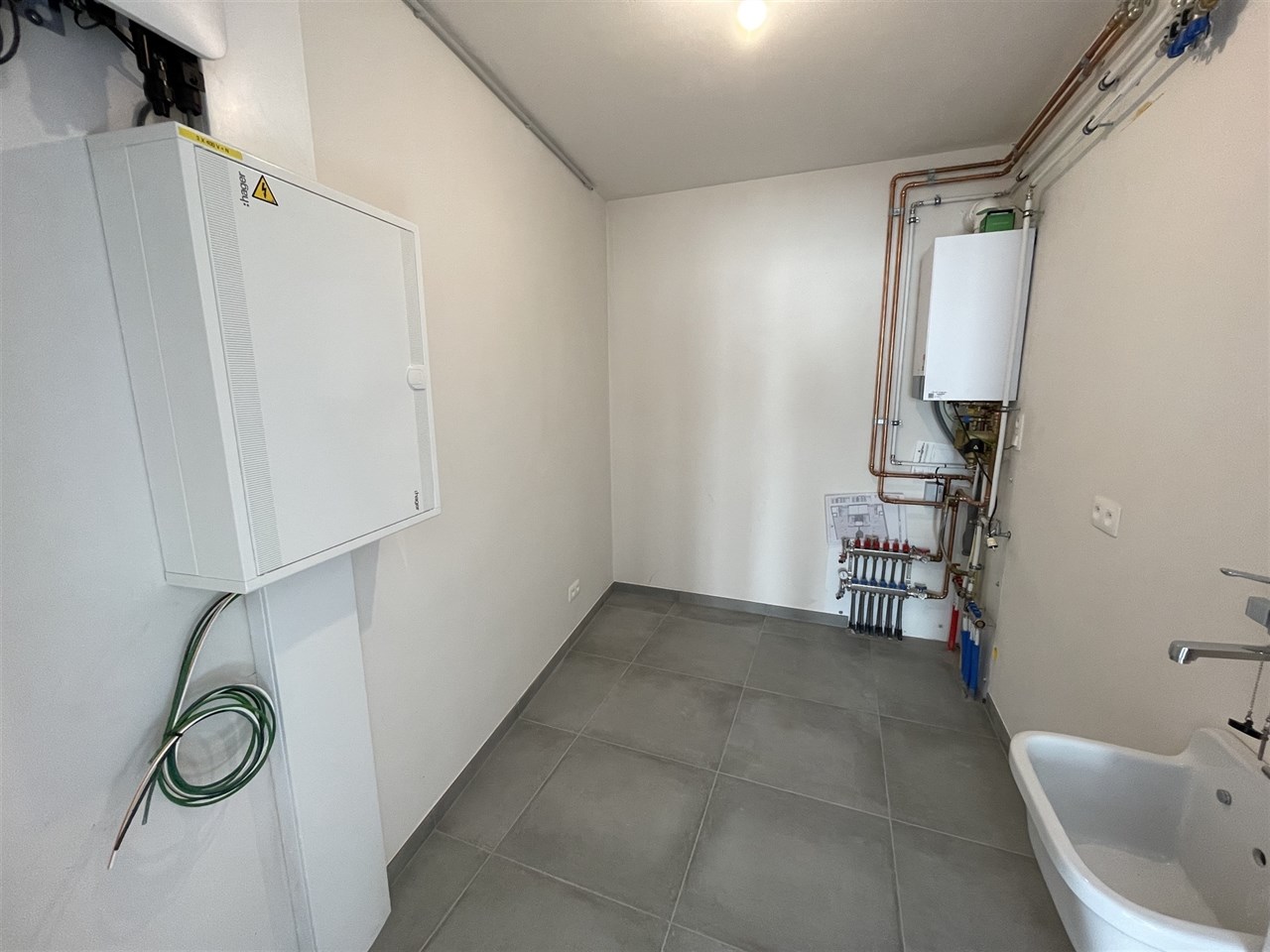 Aansluitend terras van 8m² (wordt nog afgewerkt) en praktisch berging met lavabo.