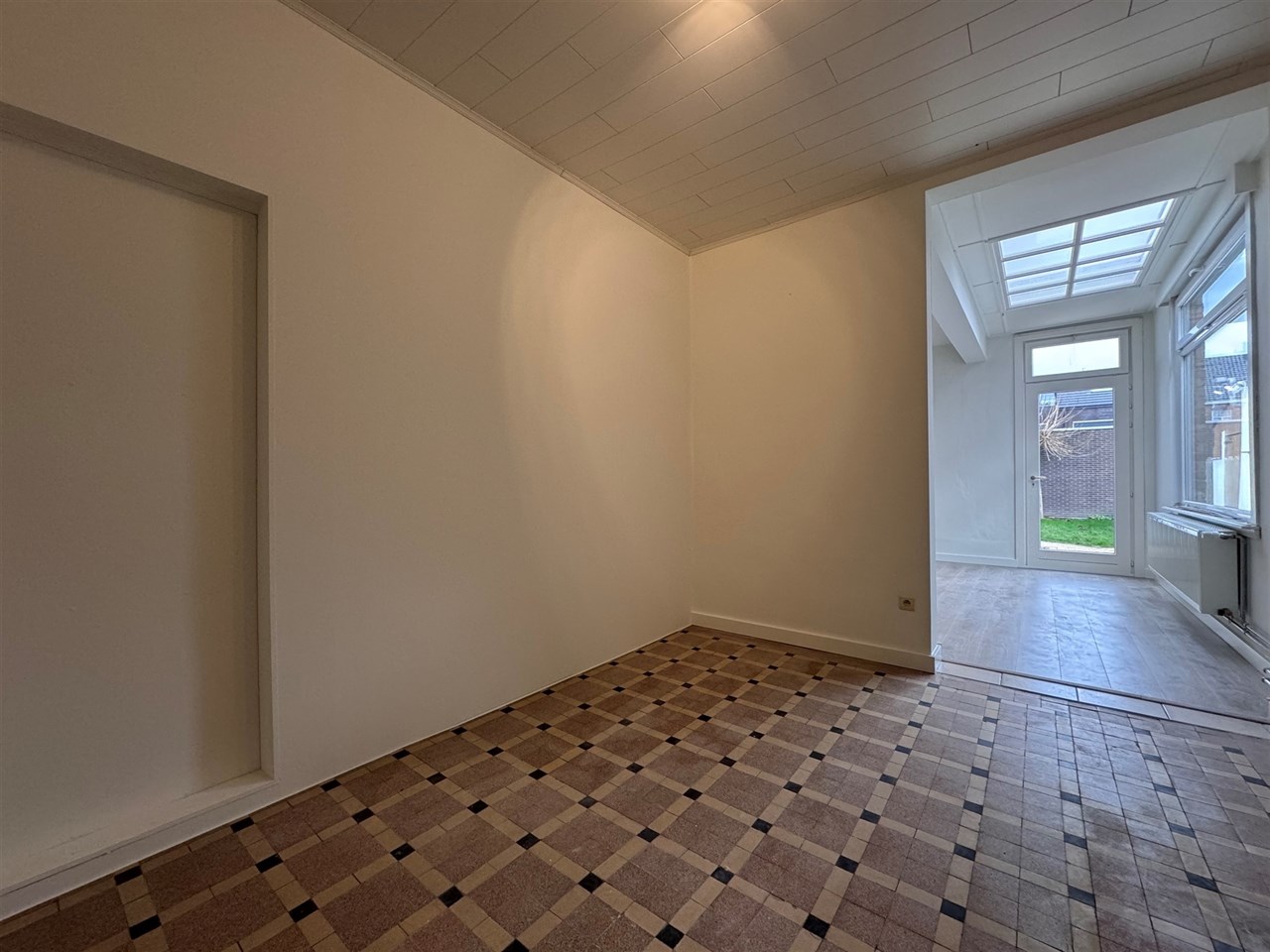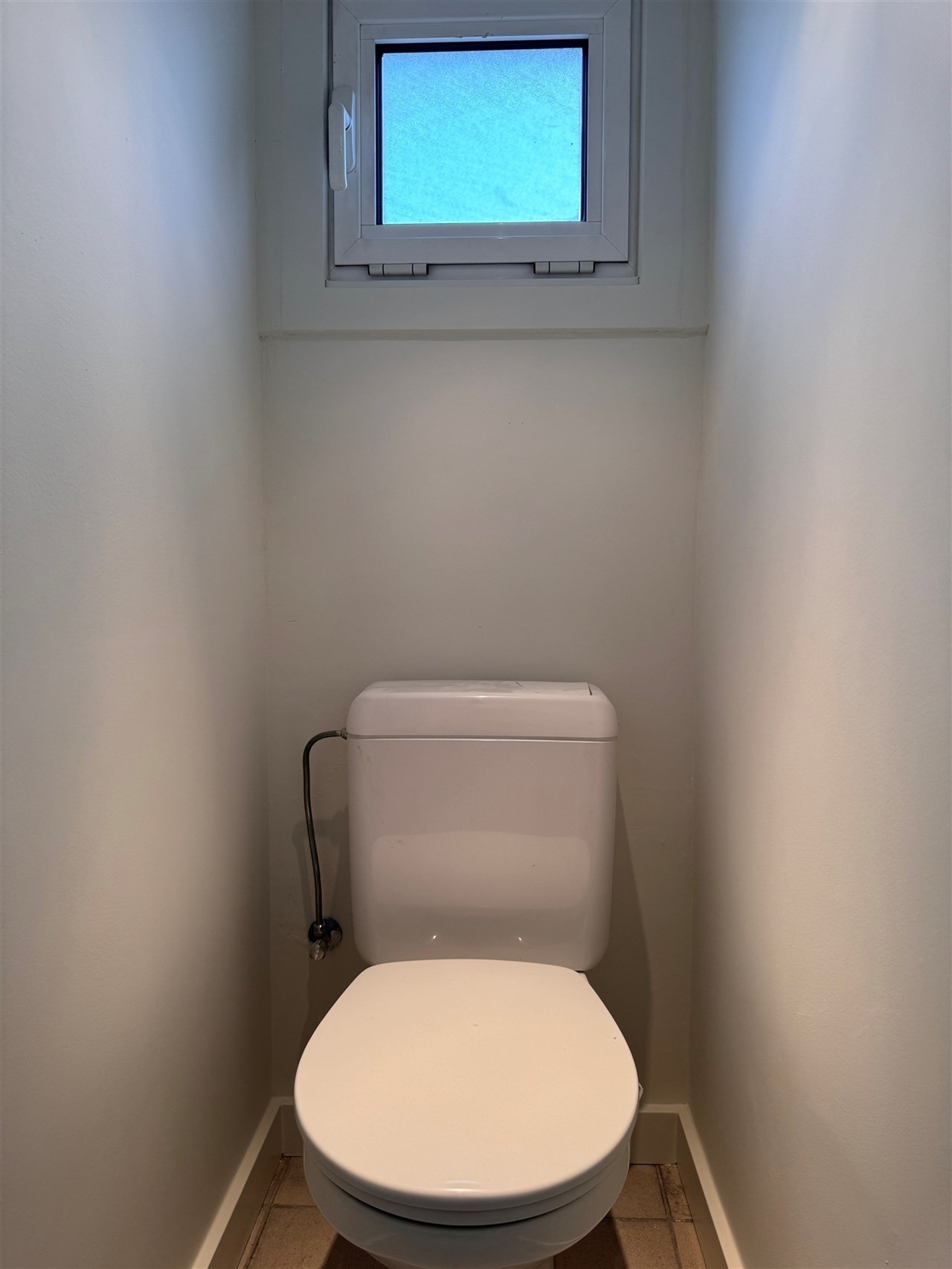 voorkamer/bureau, lichtrijke leefruimte met tuinzicht, uitgeruste keuken met eetgelegenheid en aansluitend een toilet.