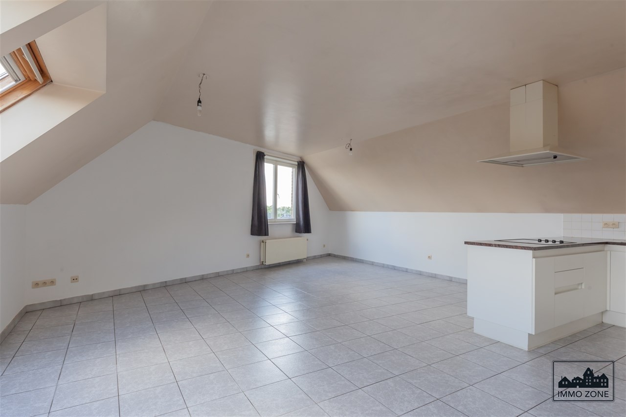 Het dakappartement omvat een ruime woonkamer met open keuken, een slaapkamer, een ruime inkomhal met apart toilet, berging, badkamer met douche (de badkamer werd recent vernieuwd) en een bergingszolder.
