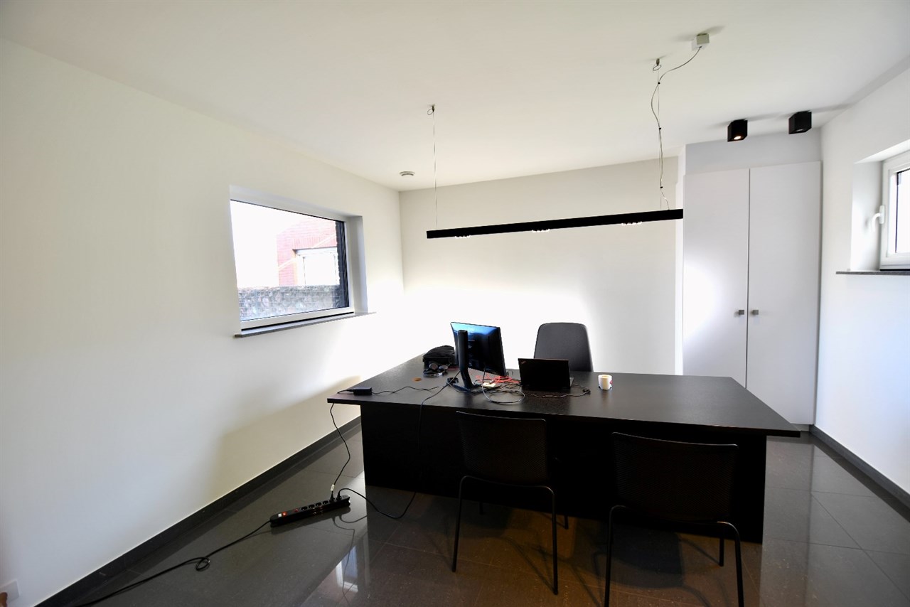 Bent u op zoek naar een veelzijdige kantoor- of praktijkruimte op een toplocatie? Neem dan zeker contact met ons op! Dit kantoor beslaat de volledige gelijkvloerse verdieping en biedt maar liefst 110 m² bruikbare vloeroppervlakte. Centraal bevindt zich een grote polyvalente ruimte, met aan de zijkant een apart bureau en een bijhorende berging of archiefruimte. Achteraan vindt u een ruime vergaderruimte, waarvan de ramen volledig opengezet kunnen worden, zodat de achterliggende tuin een verlengde wordt van uw werkplek. De ruimte is volledig geschilderd en voorzien van internetbekabeling. Daarnaast beschikt het kantoor over een kitchenette en twee aparte toiletten. Alle ruimtes kunnen met elkaar verbonden worden of opgesplitst worden met schuifdeuren en wanden, afhankelijk van uw noden. De huurprijs is exclusief btw. Troeven: - 16 zonnepanelen - airco's - 5 staanplaatsen - achterliggende tuin Geen gemeenschappelijke kosten! Interesse?