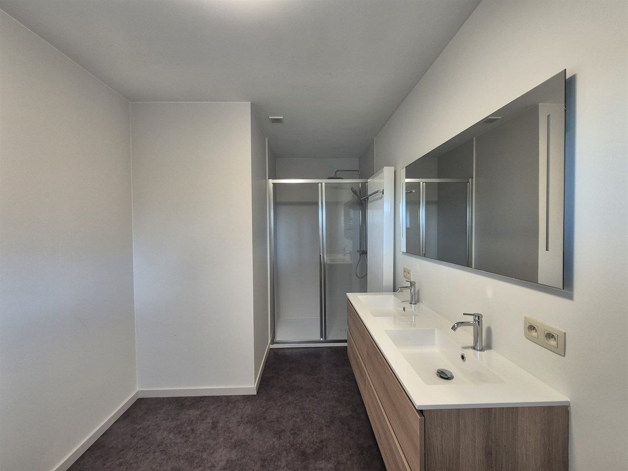 Op de eerste verdieping bevindt zich een ruime slaapkamer, een ingerichte badkamer met douche en dubbele lavabo met meubel, evenals een apart toilet voor extra comfort.