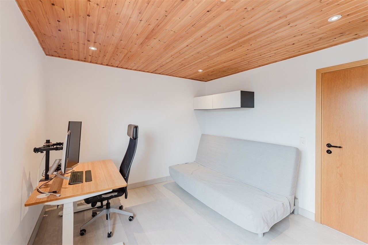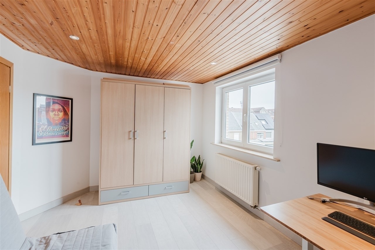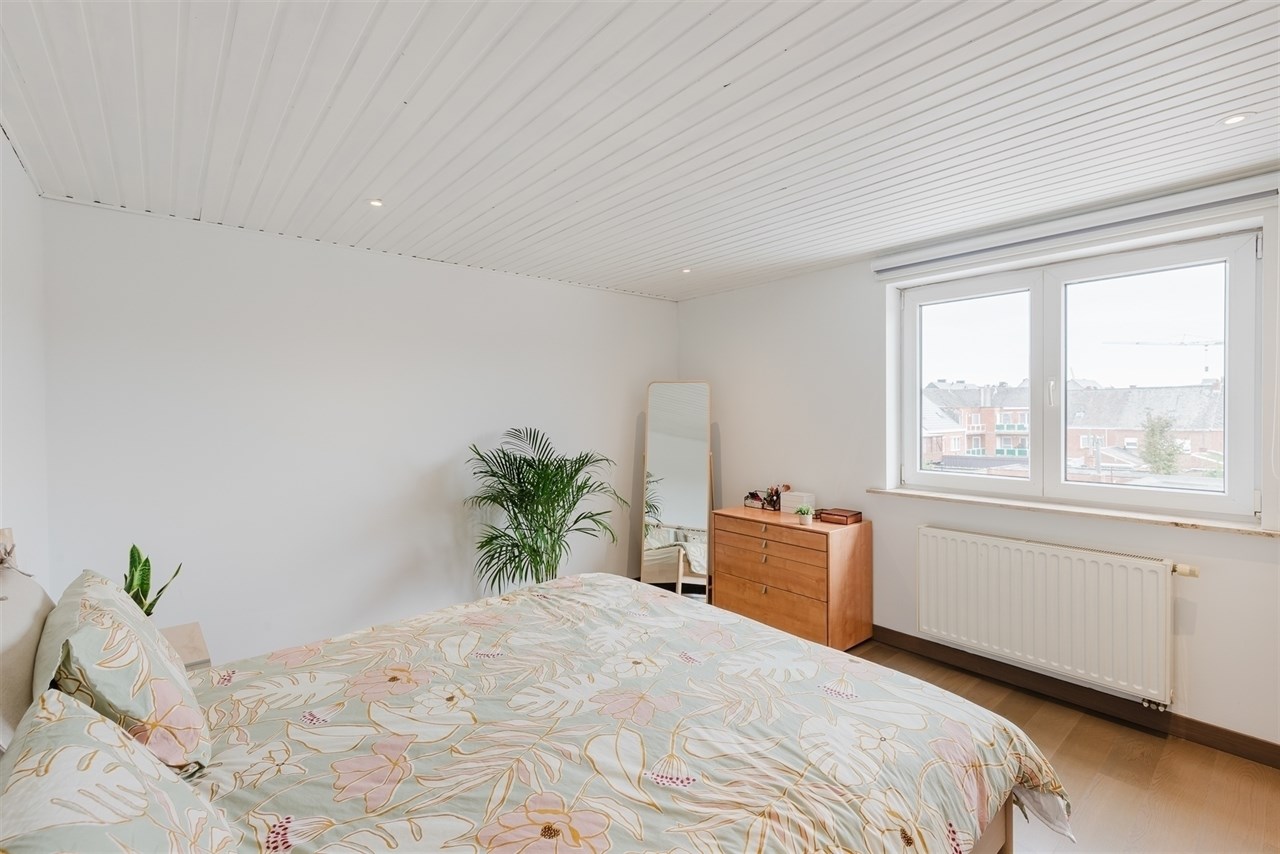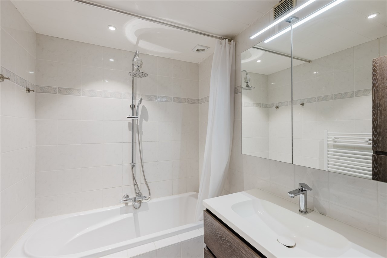 Verder vinden we nog 2 ruime slaapkamers (15m² & 13m²) en een badkamer die voorzien is van een badkamermeubel en een douche in bad.