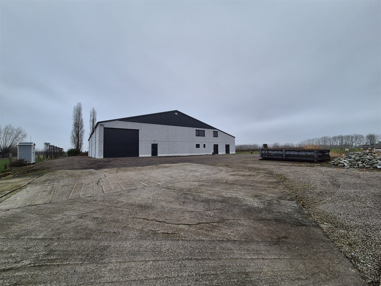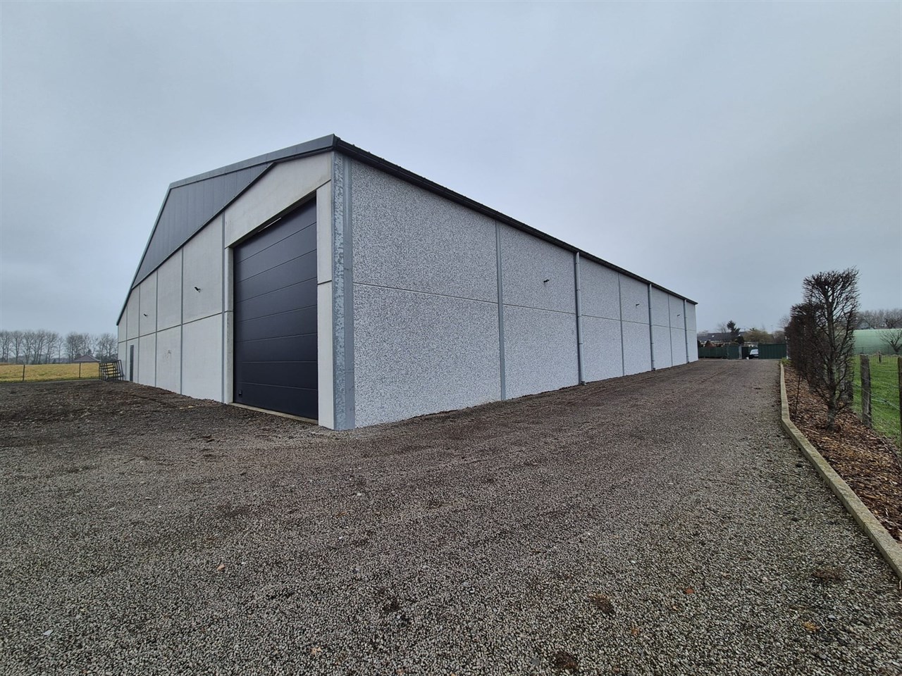 Ruime en hoge loods van ongeveer 1.000 m², ideaal voor opslag of logistiek. De loods heeft 3 afzonderlijke poorten, waardoor vrachtwagens en camionettes gemakkelijk kunnen binnenrijden.