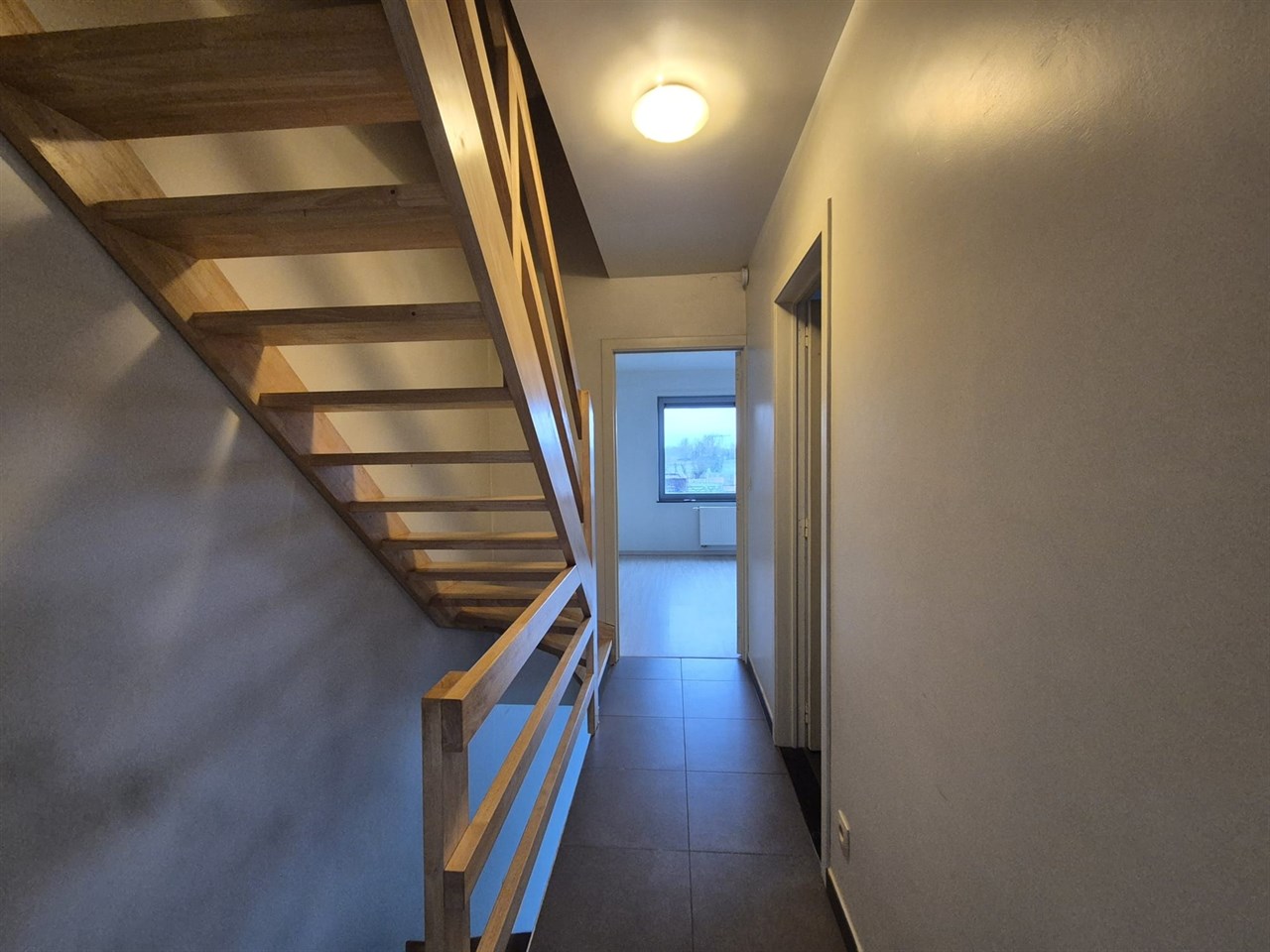 inkomhal, toilet met lavabo, ruime ingerichte keuken uitgerust met ceramische kookplaat, oven, dampkap en frigo.