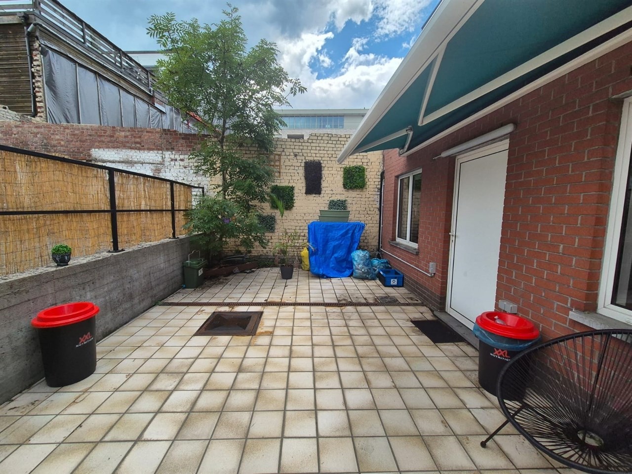 Achtergelegen vinden we een bureau, keuken, berging en toilet. Vanuit de keuken kan u ook naar het terras.