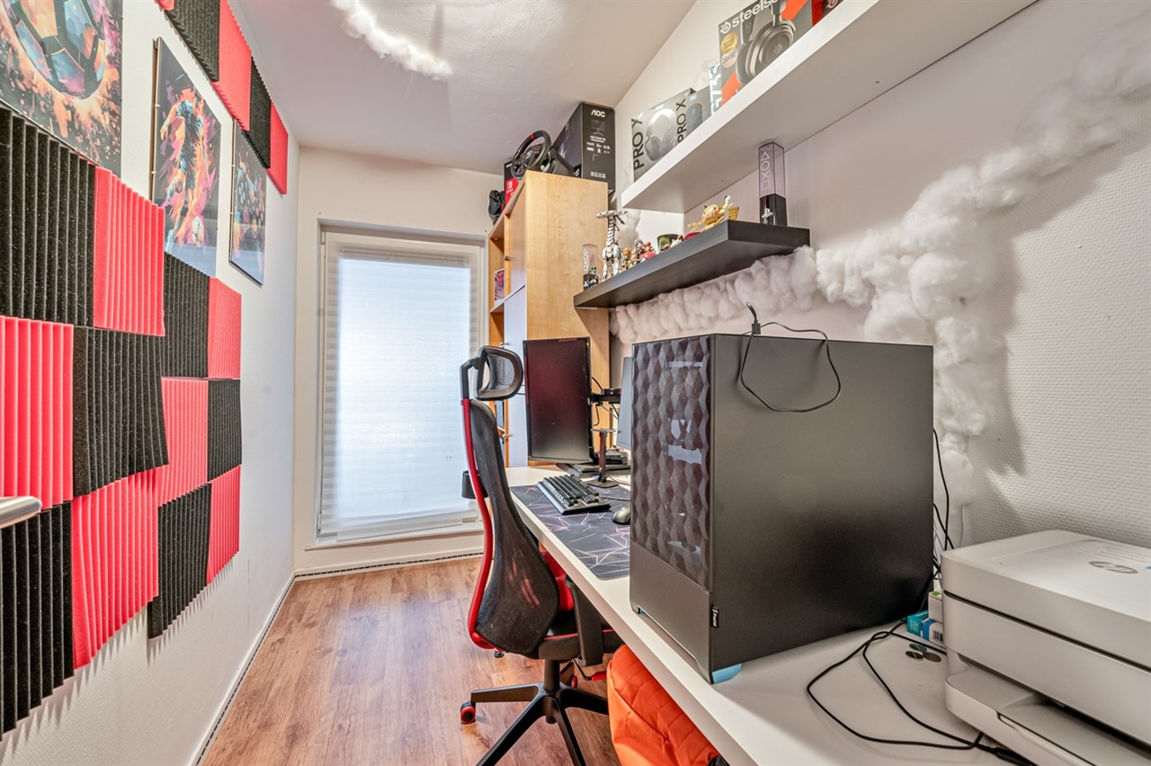 Via de inkomhal betreedt men het appartement, dat uitblinkt door een logische indeling en een aangename lichtinval. De woonkamer vormt het hart van de woonst en biedt een gezellige leefruimte met voldoende plaats voor een zithoek en eetruimte. Aansluitend bevindt zich de keuken, die functioneel is ingericht en in directe verbinding staat met de leefruimte. Het appartement beschikt over twee slaapkamers, die flexibel inzetbaar zijn als slaap-, werk- of hobbyruimte. De badkamer is praktisch ingericht en vervolledigt het wooncomfort. Tot slot is er een klein terras aanwezig, ideaal om even tot rust te komen of van de buitenlucht te genieten.