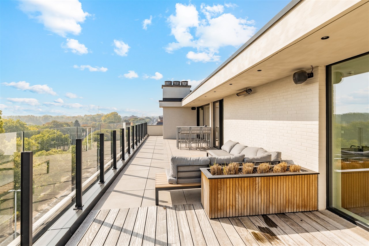 De buitenruimtes maken dit penthouse werkelijk uniek: zowel aan de voor- als achterzijde geniet u van uitzonderlijke terrassen met een spectaculair uitzicht. Perfect voor een ontspannen ontbijt in de ochtendzon of sfeervolle avonden met zicht op de stad.