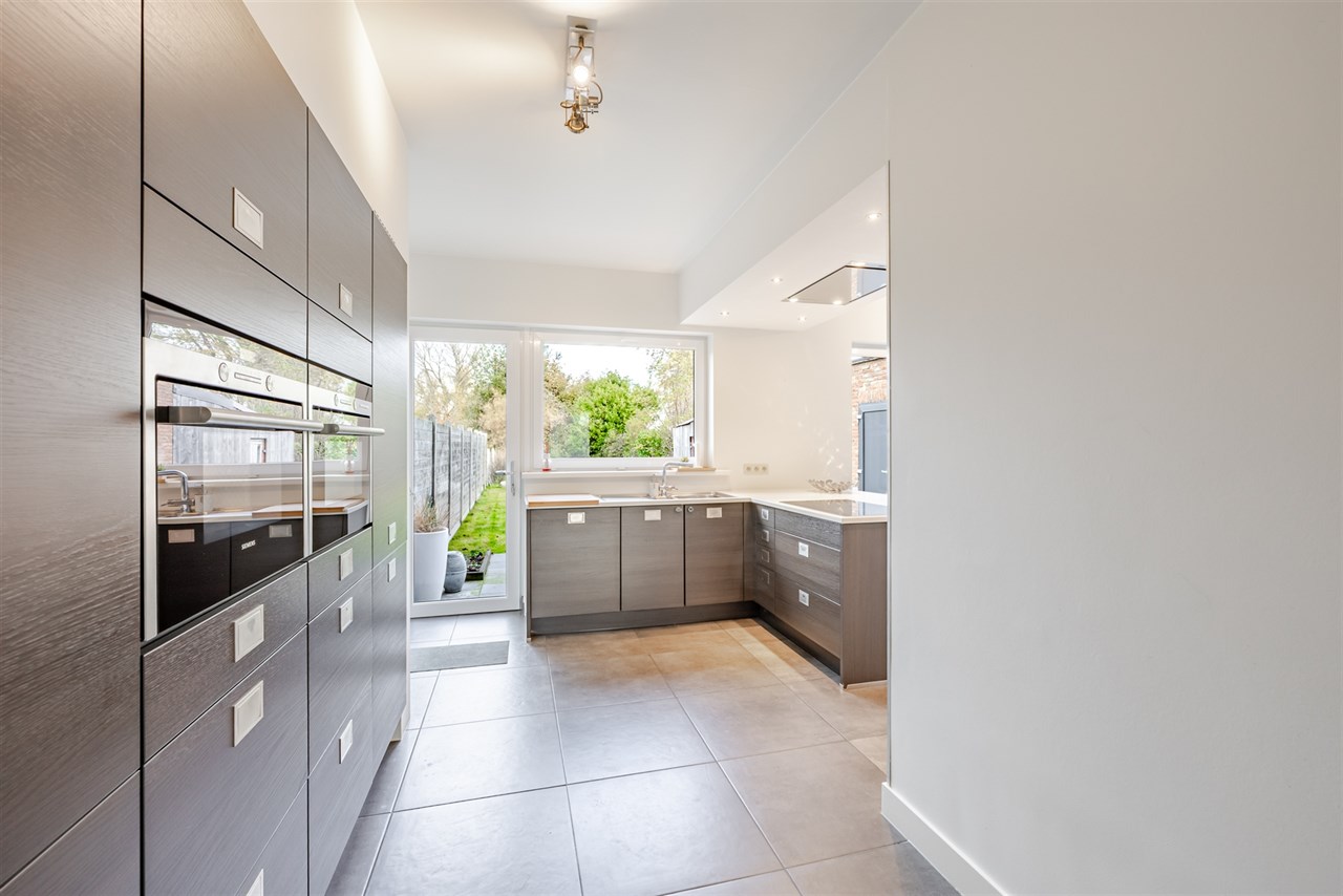 Buiten is het heerlijk vertoeven in de diepe, westgerichte tuin met zonneterras. De oprit aan de zijkant biedt plaats aan meerdere wagens, terwijl de ruime garage met elektrische poort directe toegang geeft tot de tuin een groot pluspunt op het vlak van comfort en gebruiksgemak.