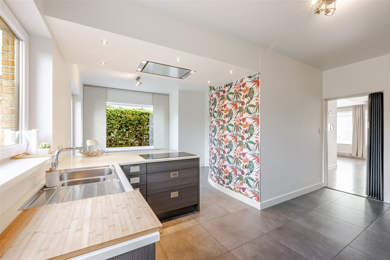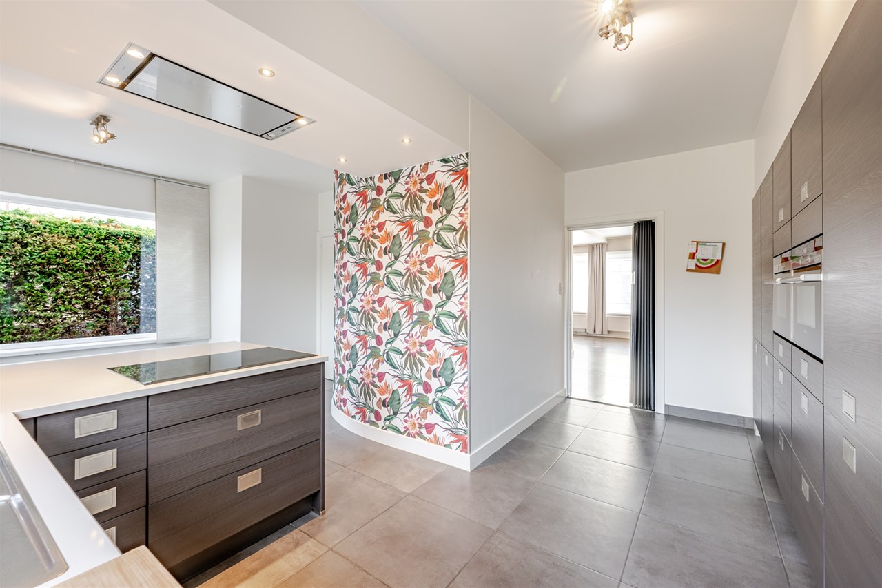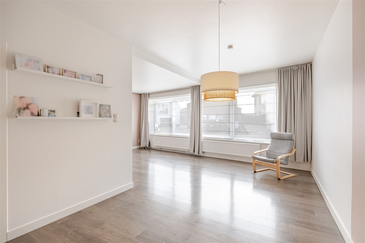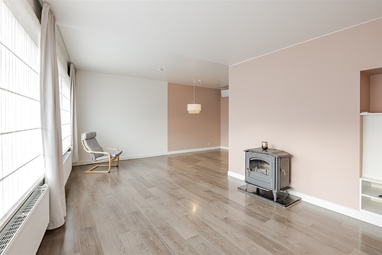 De woning onderscheidt zich door haar doordachte indeling en aangename sfeer. De leefruimte vormt het hart van het huis: een lichtrijke, gezellige plek met open haard en een eetgedeelte dat in open verbinding staat met de moderne keuken. Deze keuken is uitgerust met een centraal eiland en kwalitatieve toestellen ideaal voor wie graag kookt en samenkomt.