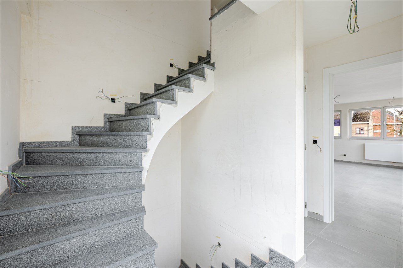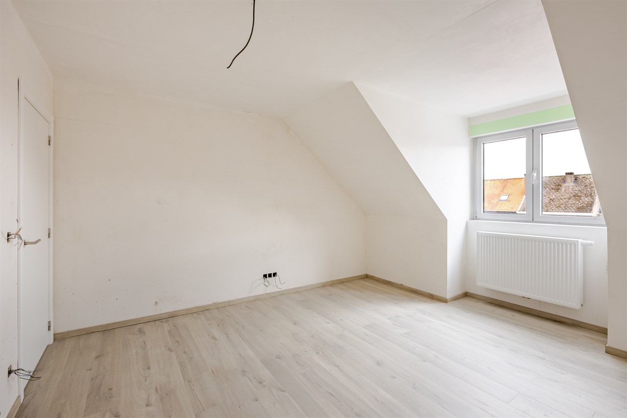 Bij het binnenkomen verwelkomt de lichtrijke inkomhal met trappenhal u naar de eerste verdieping, waar zich een zeer ruime leefruimte, keuken, berging en apart toilet bevinden. Achteraan is er bovendien de mogelijkheid tot het afwerken van een aangenaam terras. Op de bovenste verdieping vindt u de nachthal, twee volwaardige slaapkamers, een dressing of extra bergruimte en een ruime badkamer. Daarnaast beschikt u nog over een praktische zolderverdieping die perfect dienst kan doen als extra opslagruimte.