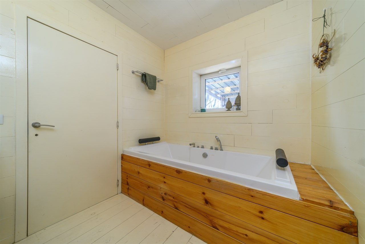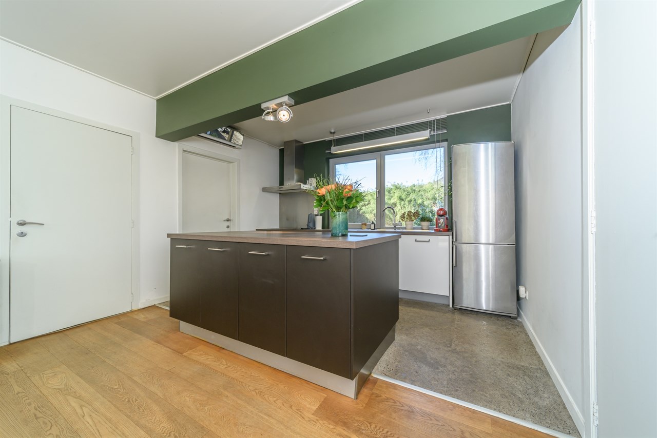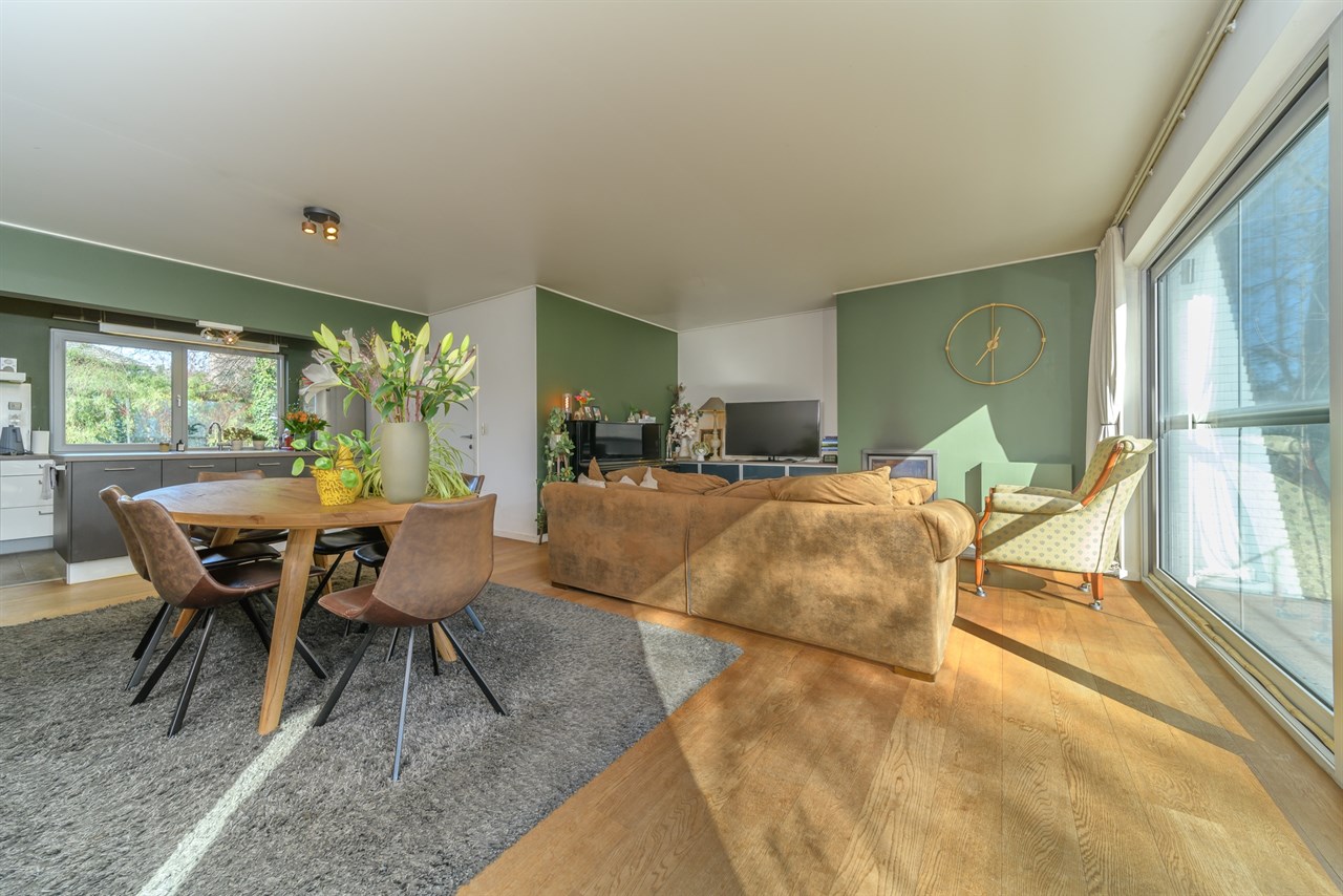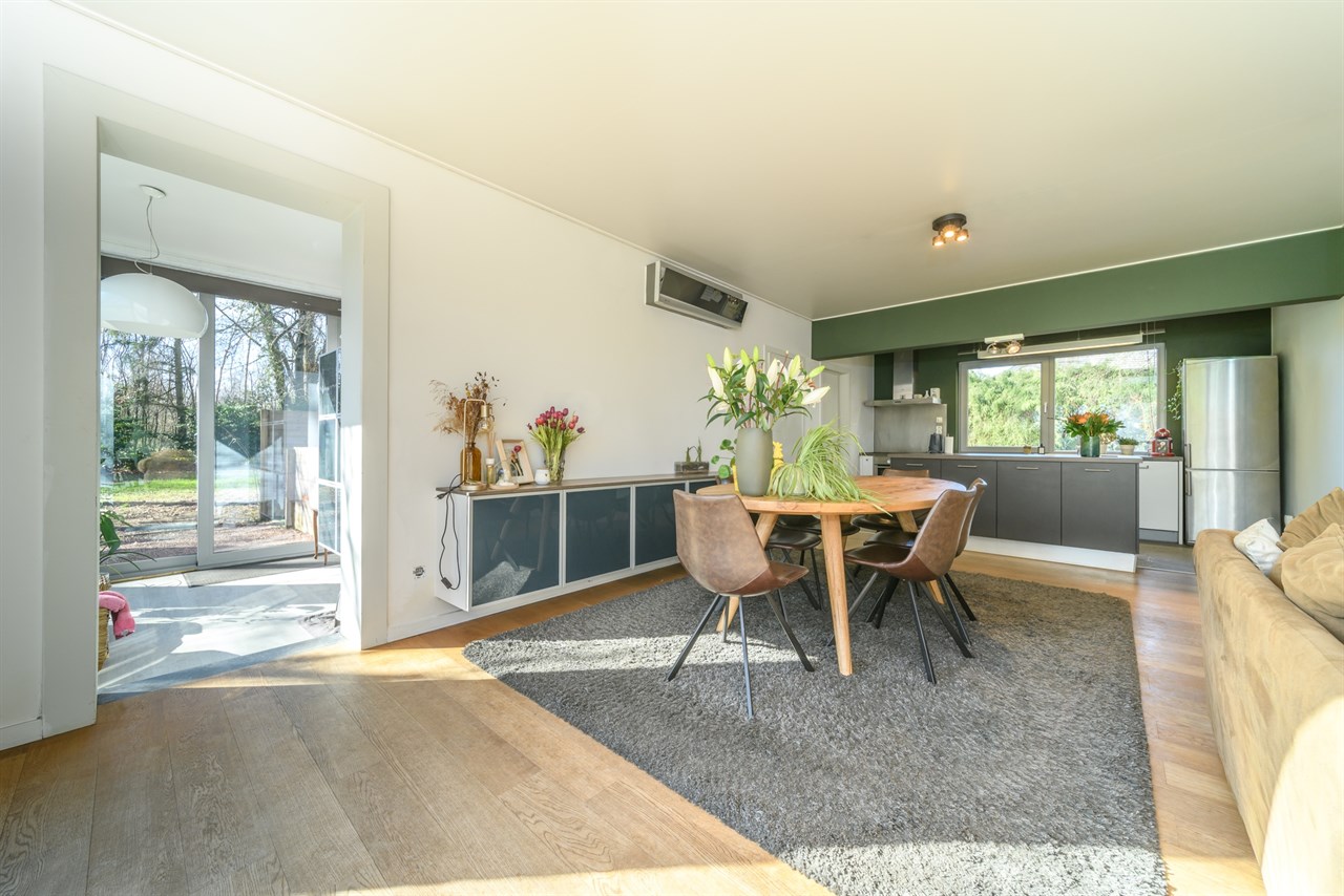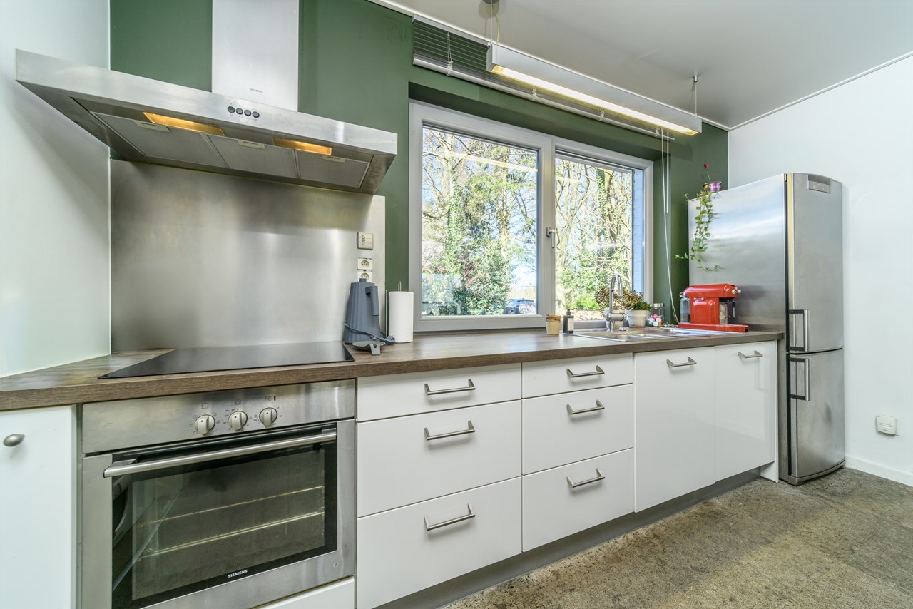 Via de inkomhal met gastentoilet betreedt u de lichtrijke leefruimte met open, volledig geïnstalleerde keuken, die samen het warme hart van de woning vormen. Grote raampartijen bieden een prachtig zicht op de tuin en versterken het gevoel van binnen-buitenleven. Aansluitend bevindt zich een praktische garage of berging met annex een badkamer uitgerust met ligbad en lavabo, evenals een aparte wasplaats. Naast de leefruimte is een bureaugedeelte voorzien met zicht op het groen, ideaal voor wie comfortabel van thuis uit wenst te werken. Verder beschikt de woning over twee volwaardige slaapkamers en