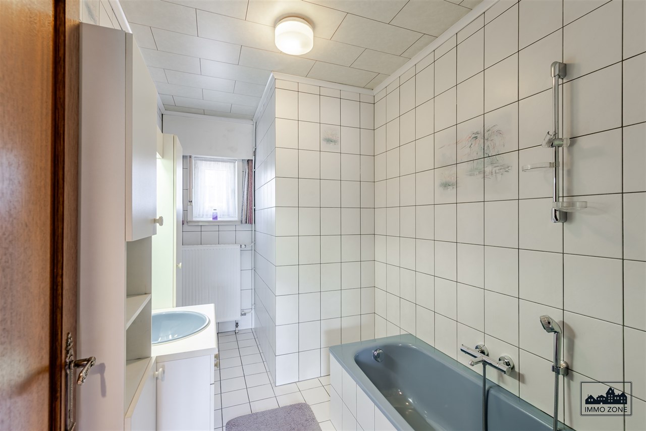 Verder vindt u in de inkomhal een apart gastentoilet. Op het gelijkvloers biedt de nachthal toegang tot twee ruime slaapkamers (14m2 en 15m2) en een badkamer voorzien van een douchebad en een enkele wastafel.