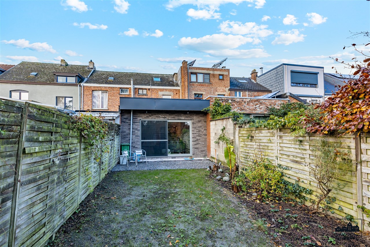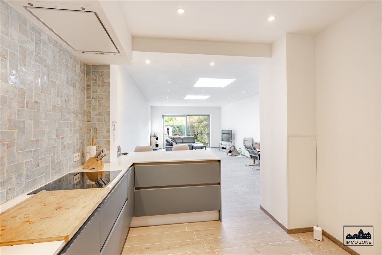 Op het gelijkvloers kom je binnen in de gerieflijke inkomhal met apart gastentoilet en handige bergruimte. Deze berging biedt plaats voor opslag, wasmachine & droogkast & eventueel de fietsen. De open, volledig uitgeruste keuken sluit mooi aan op de lichtrijke leefruimte, waar de grote ramen direct uitgeven op de gezellige tuin – perfect om te ontspannen of te genieten met vrienden.