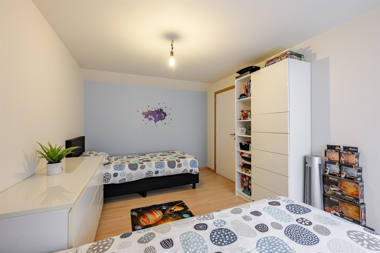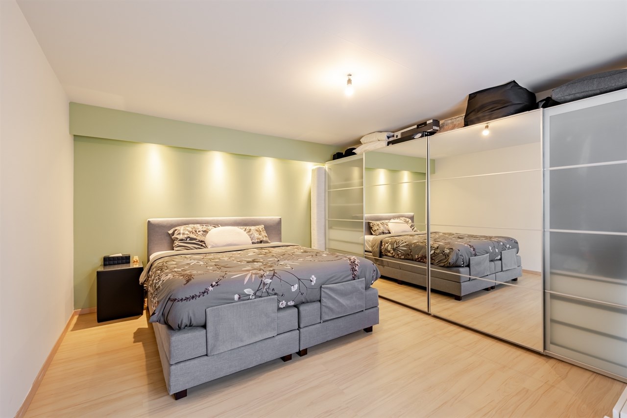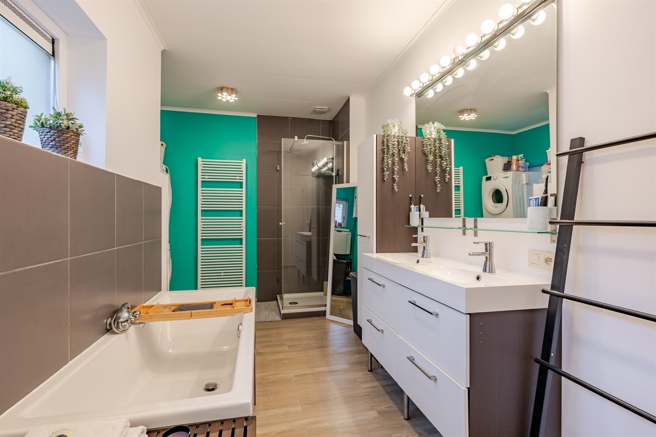 Op het gelijkvloers bevinden zich de inkomhal, lichtrijke woonkamer met aansluitend de volledig ingerichte keuken en badkamer met inloopdouche, ligbad en wastafel.