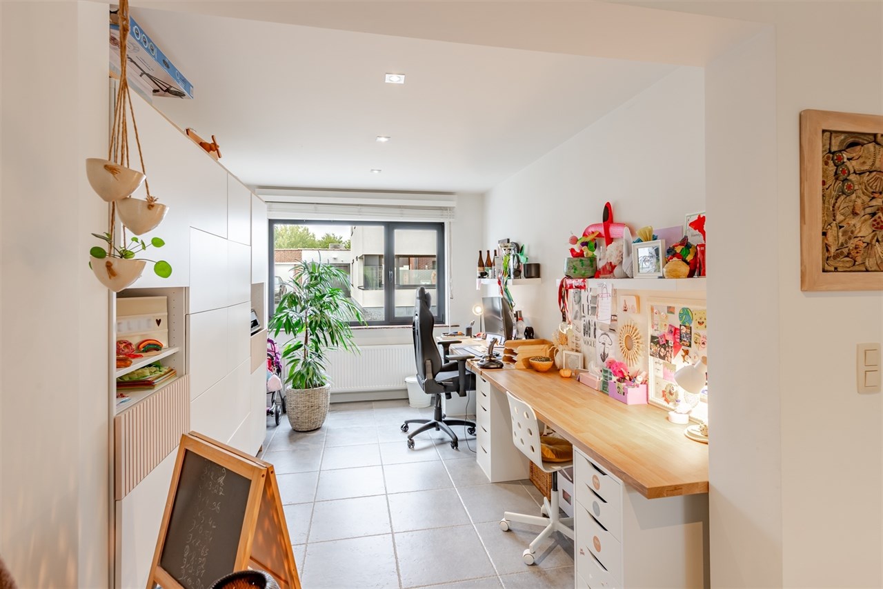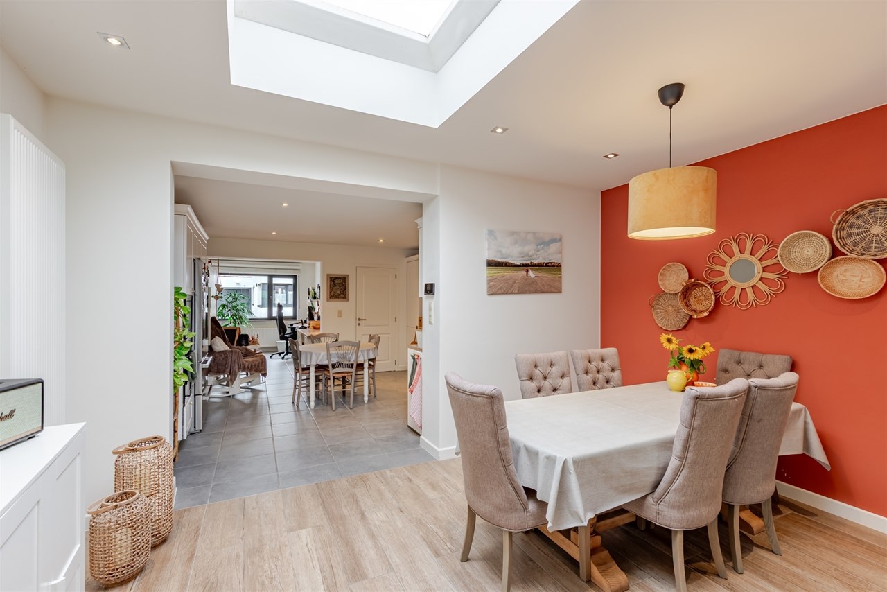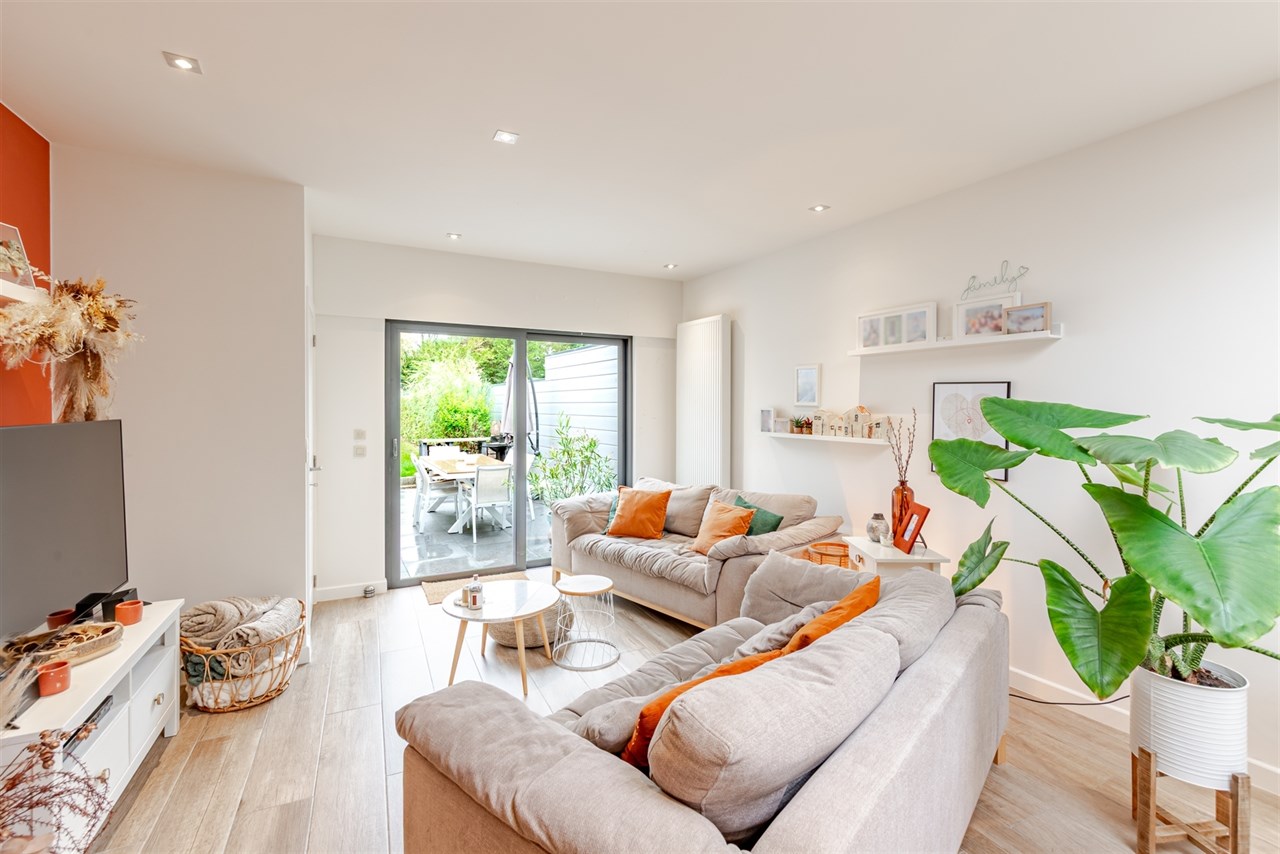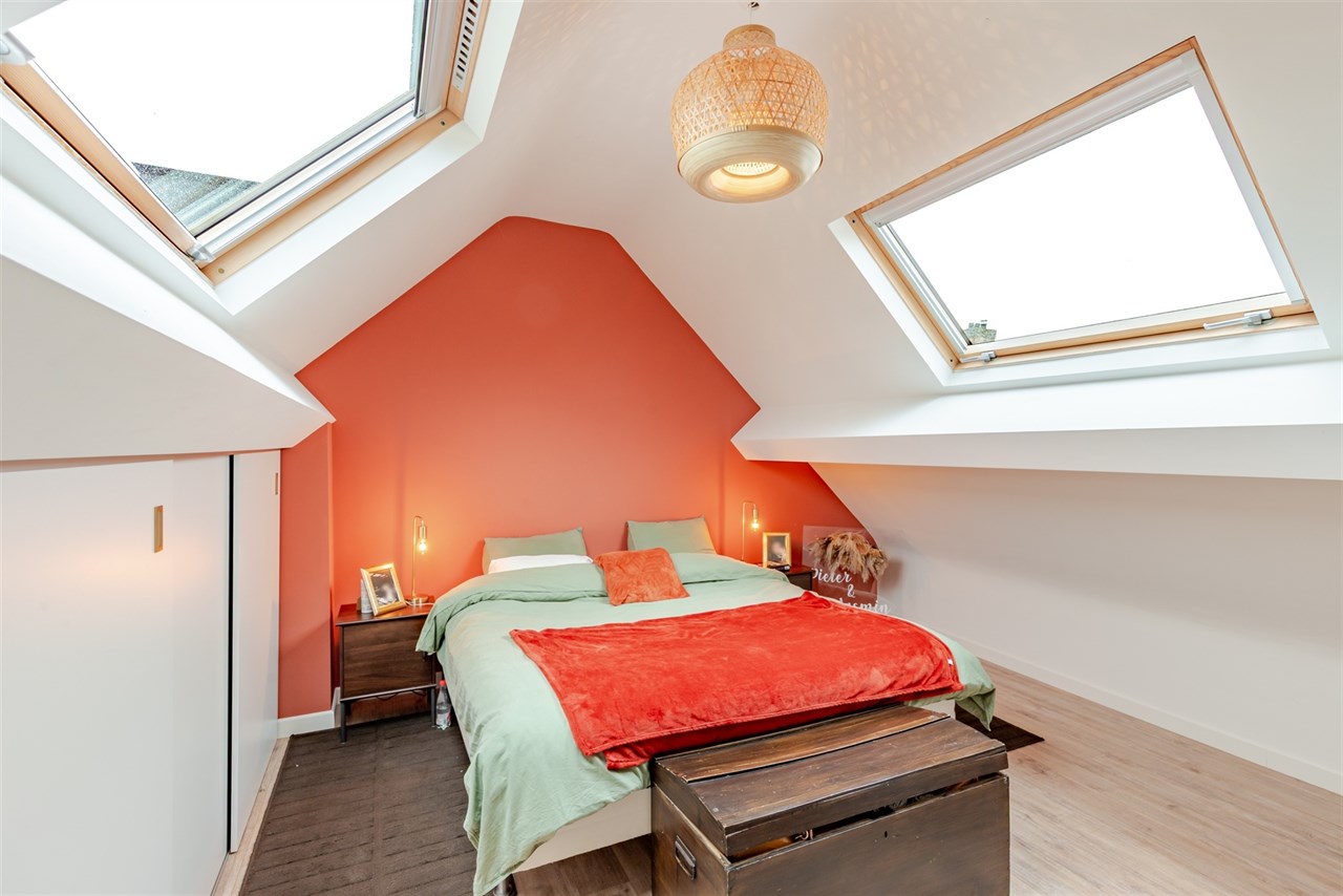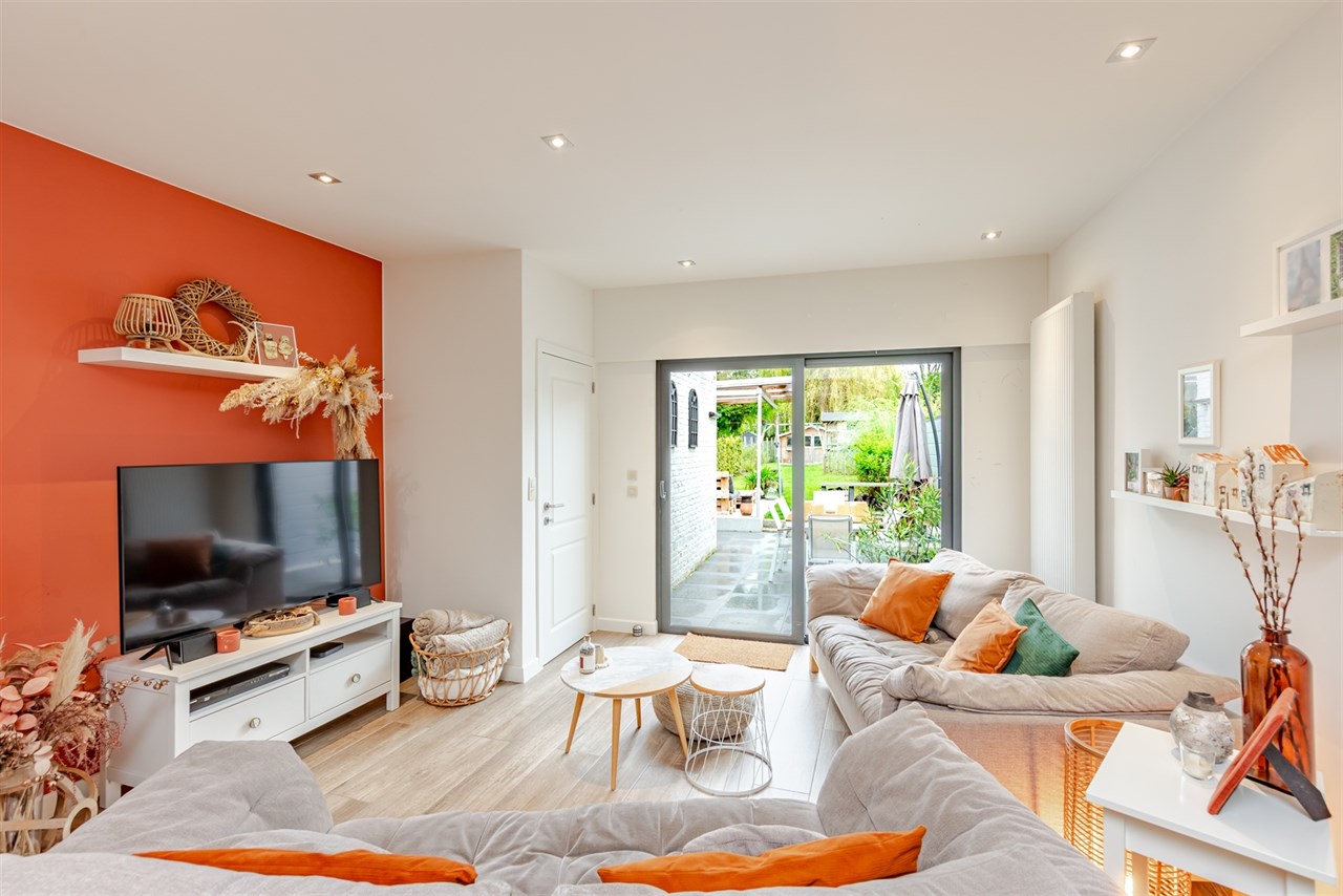Deze prachtig ingerichte woning werd verbouwd in 2018 en bevindt zich in een kindvriendelijke, doodlopende straat te Erembodegem. Deze is onmiddellijk instapklaar en gelegen op een Zuidoostelijk georiënteerd perceel van 4 are 5 centiare. Via de inkomhal op het gelijkvloers krijgt men toegang tot de speelhoek / bureauruimte en de open, mooi ingerichte keuken (AEG-toestellen) met plaats voor een ontbijttafel. De ruime en lichtrijke woonkamer biedt een rustgevend zicht op de achterliggende tuin met aangelegd terras en groenzicht. Verder bevinden zich nog op het gelijkvloers een apart toilet en een berging / wasplaats met doorgang naar de tuin. Via deze berging is er ook een afgesloten doorgang naar de straatzijde, wat bijzonder praktisch is voor vuilnisbakken, GFT, (brom)fietsen etc. Op de eerste verdieping bevindt er zich een ruime slaapkamer, een aparte dressing en een luxueuze badkamer met inloopdouche, ligbad, hangtoilet en dubbel badkamermeubel. De zolder is ingericht als slaapkamer en is voorzien van ingebouwde kasten. Airco is voorzien op de eerste en tweede verdieping. Dak en plat dak zijn recent (en geïsoleerd), elektriciteit 100% conform en asbestveilig. Centrale verwarming op aardgas (installatie 2018). Parkeermogelijkheid in de straat aanwezig. Absolute topper!