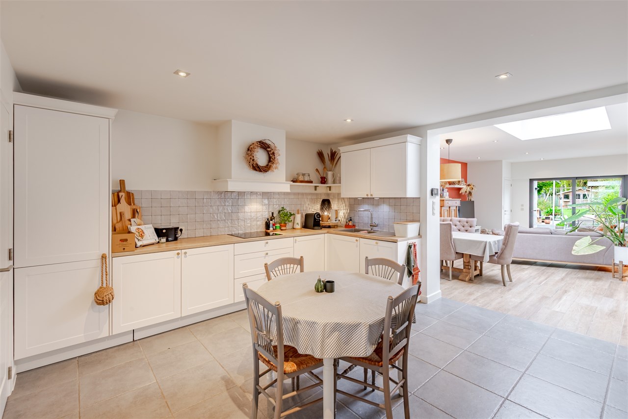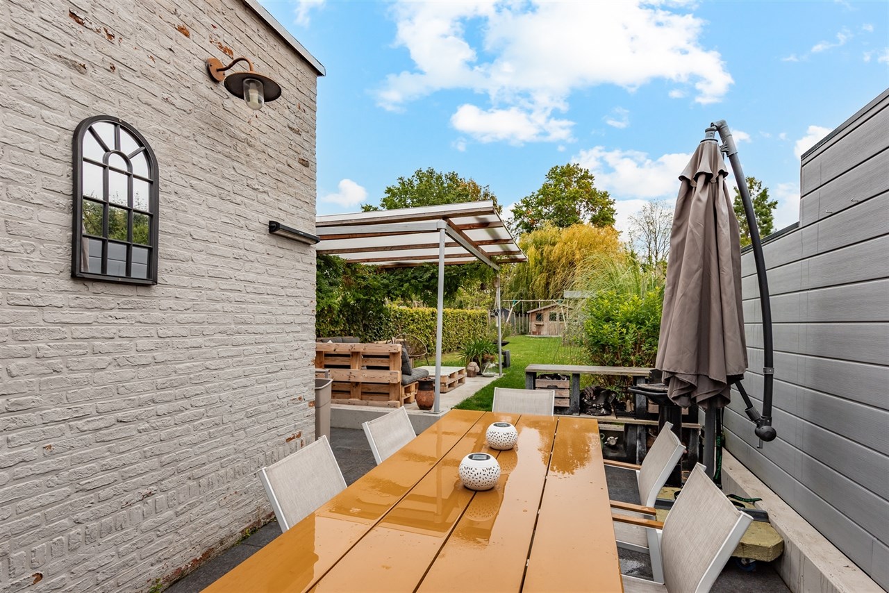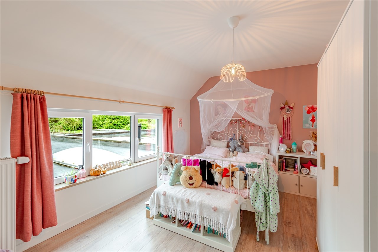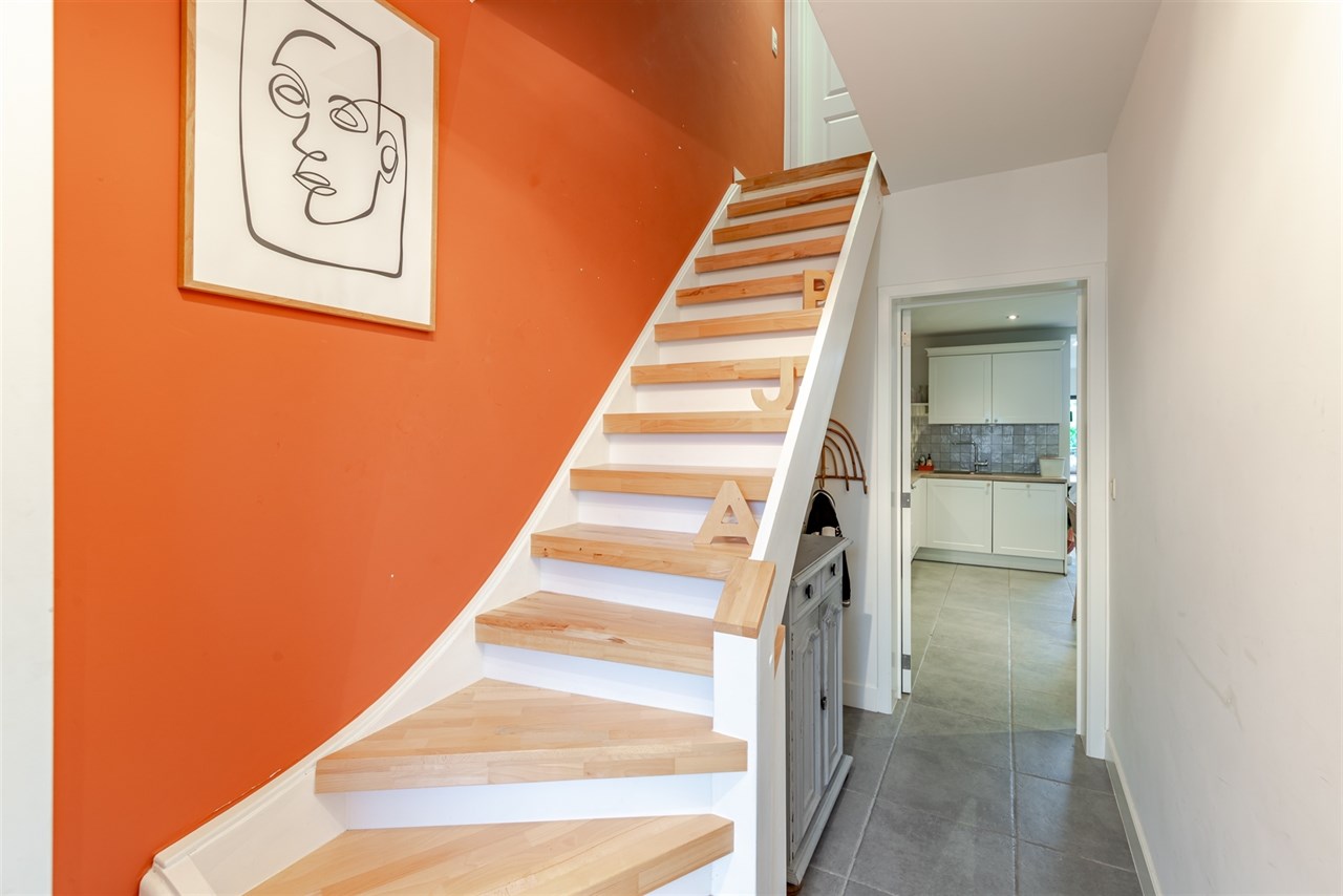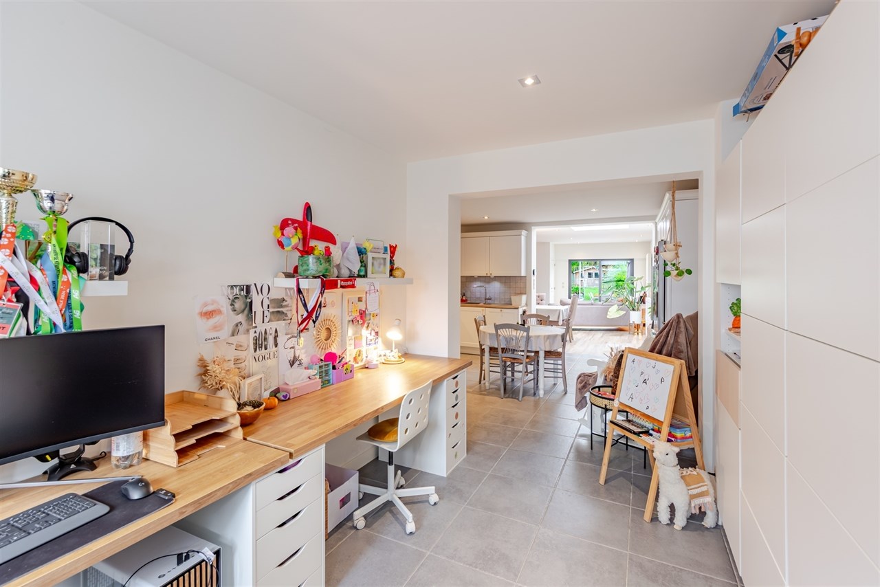 Deze prachtig ingerichte woning werd verbouwd in 2018 en bevindt zich in een kindvriendelijke, doodlopende straat te Erembodegem. Deze is onmiddellijk instapklaar en gelegen op een Zuidoostelijk georiënteerd perceel van 4 are 5 centiare. Via de inkomhal op het gelijkvloers krijgt men toegang tot de speelhoek / bureauruimte en de open, mooi ingerichte keuken (AEG-toestellen) met plaats voor een ontbijttafel. De ruime en lichtrijke woonkamer biedt een rustgevend zicht op de achterliggende tuin met aangelegd terras en groenzicht. Verder bevinden zich nog op het gelijkvloers een apart toilet en een berging / wasplaats met doorgang naar de tuin. Via deze berging is er ook een afgesloten doorgang naar de straatzijde, wat bijzonder praktisch is voor vuilnisbakken, GFT, (brom)fietsen etc. Op de eerste verdieping bevindt er zich een ruime slaapkamer, een aparte dressing en een luxueuze badkamer met inloopdouche, ligbad, hangtoilet en dubbel badkamermeubel. De zolder is ingericht als slaapkamer en is voorzien van ingebouwde kasten. Airco is voorzien op de eerste en tweede verdieping. Dak en plat dak zijn recent (en geïsoleerd), elektriciteit 100% conform en asbestveilig. Centrale verwarming op aardgas (installatie 2018). Parkeermogelijkheid in de straat aanwezig. Absolute topper!