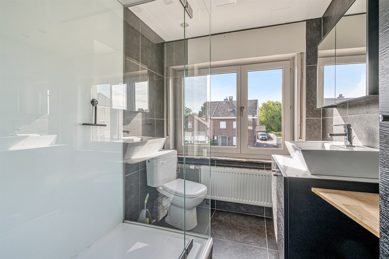 De eerste verdieping telt twee ruime slaapkamers en een recente badkamer met inloopdouche, toilet en badkamermeubel. De zolder is groot genoeg om extra kamers te voorzien, mits het plaatsen van een vaste trap. Verder beschikt de woning over een droge kelder.