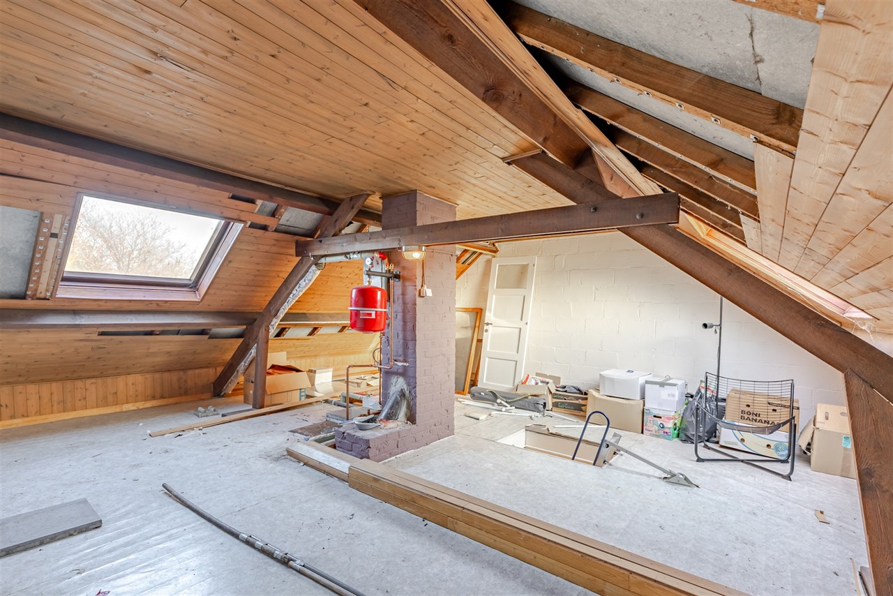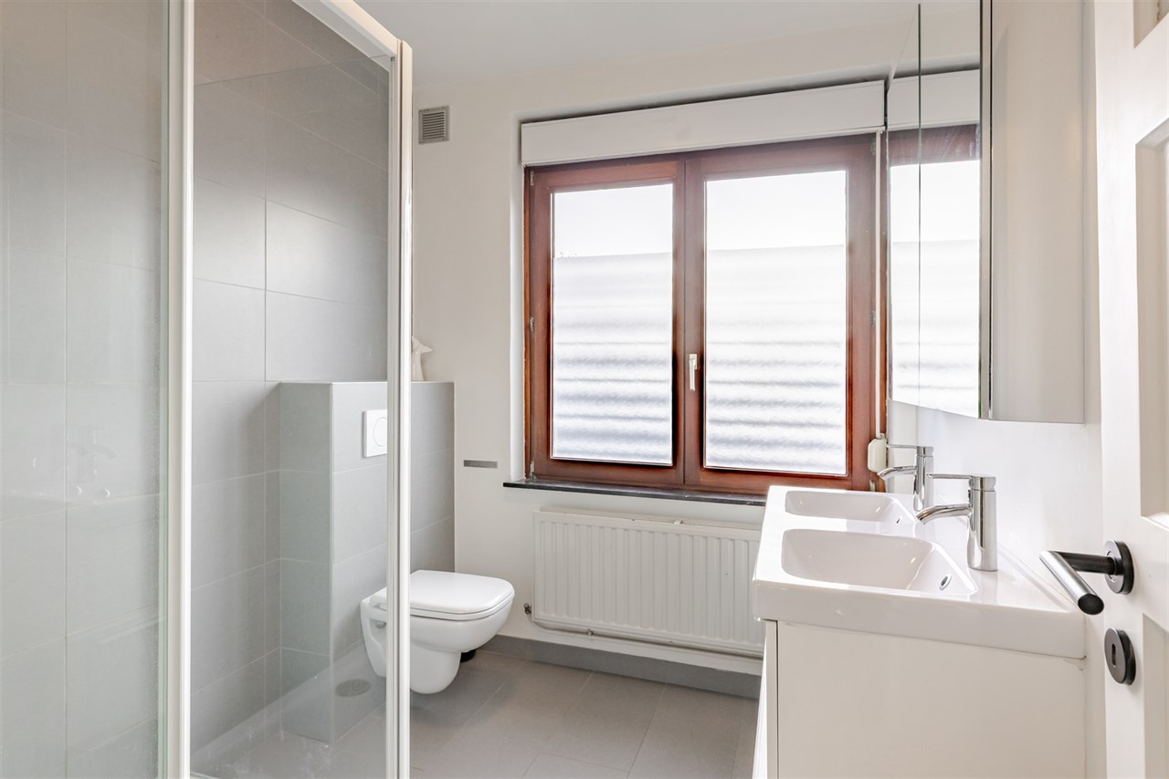 Op de eerste verdieping vinden we 2 ruime slaapkamers, een berging/ bureau en een badkamer die voorzien is van een dubbel badkamermeubel, inloopdouche en tweede toilet. Verder vinden we nog een zolder van 34m² die kan omgebouwd worden tot extra slaapkamer.