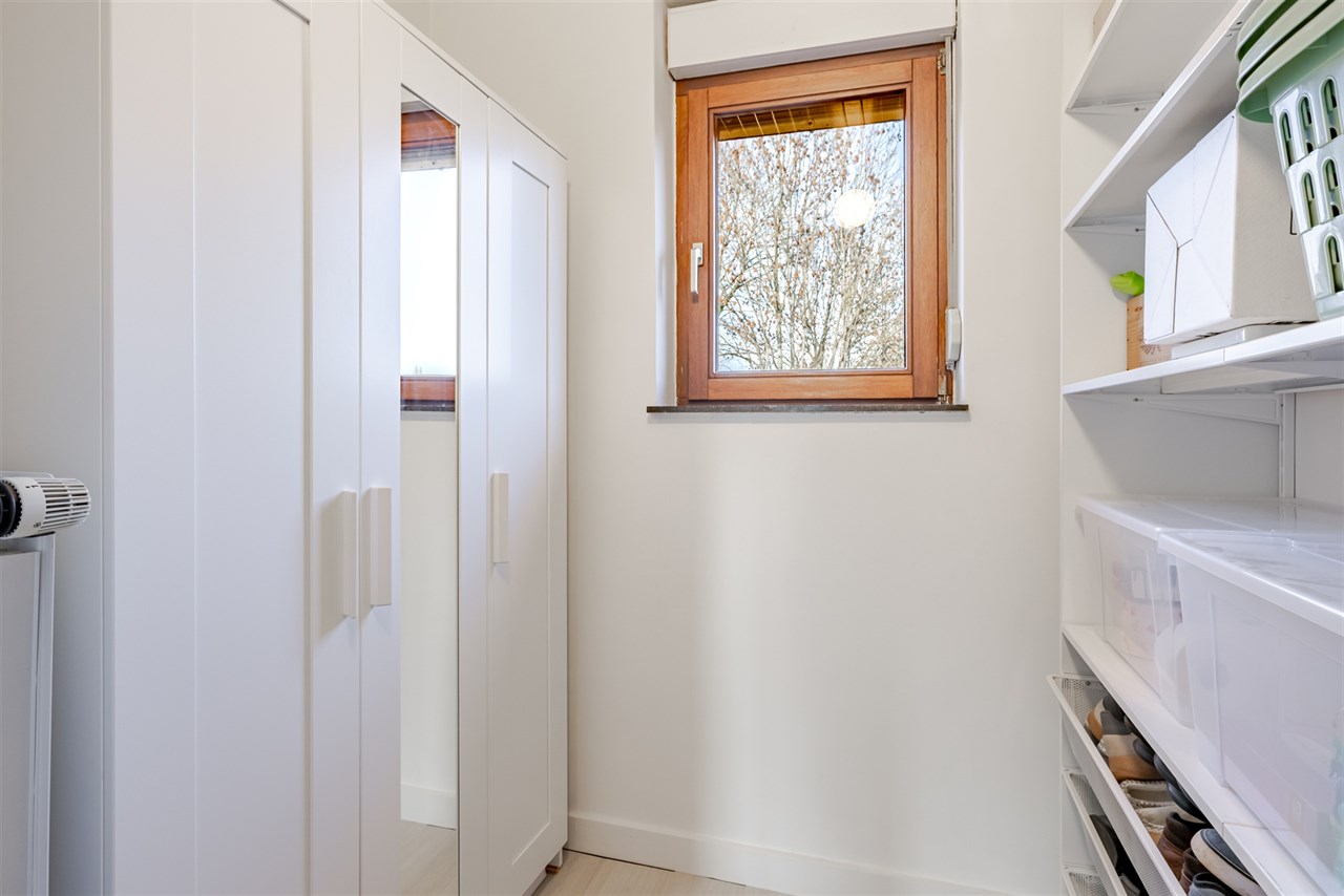 Een grote troef is de aangename, onderhoudsvriendelijke tuin waar u kan ontspannen en genieten van de rust. Er is ook een bijgebouw met aansluiting voor water, elektriciteit en de mogelijkheid om zonnepanelen te plaatsen en achteraan is er een uitweg waardoor u met fietsen of afval niet door de woning hoeft.