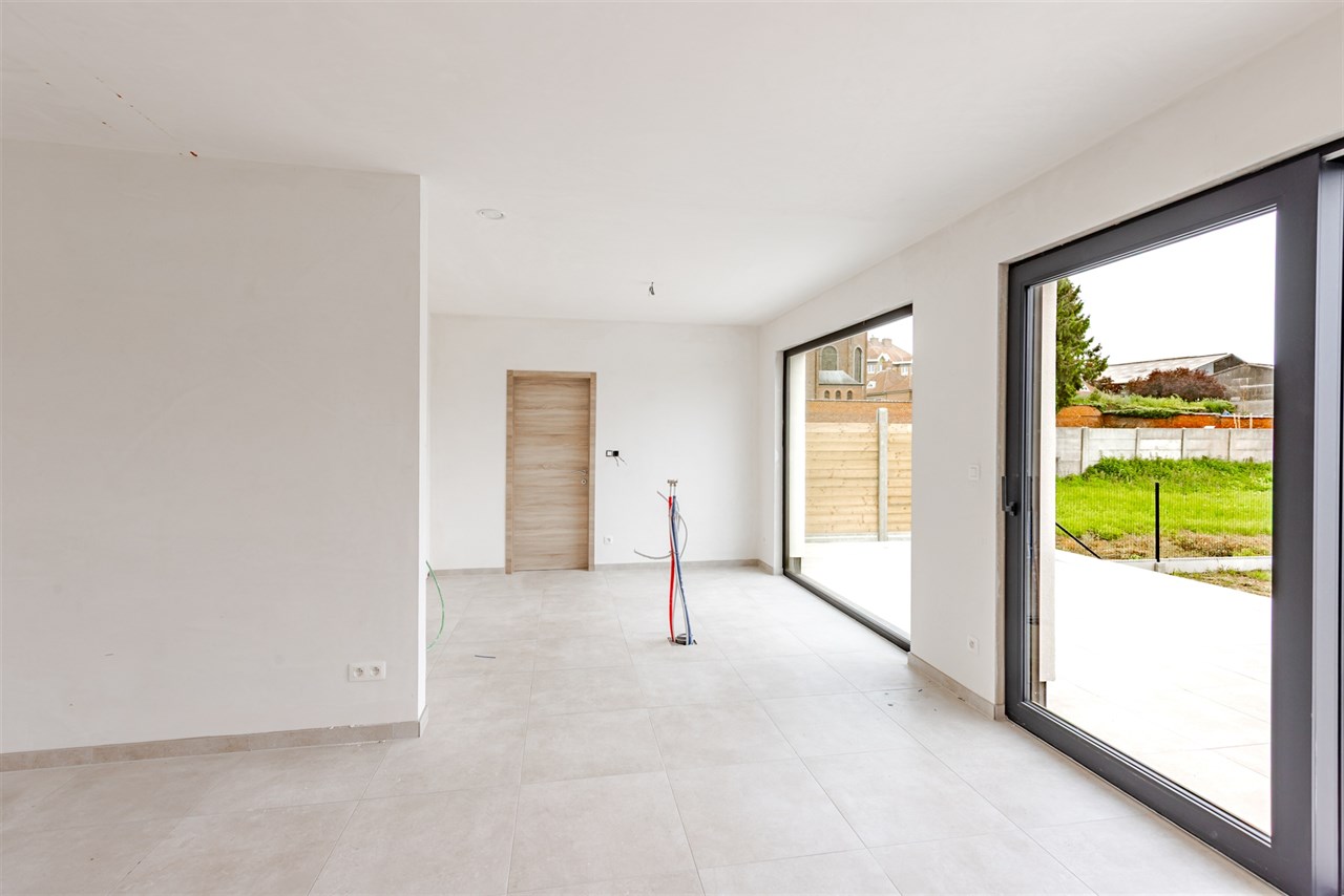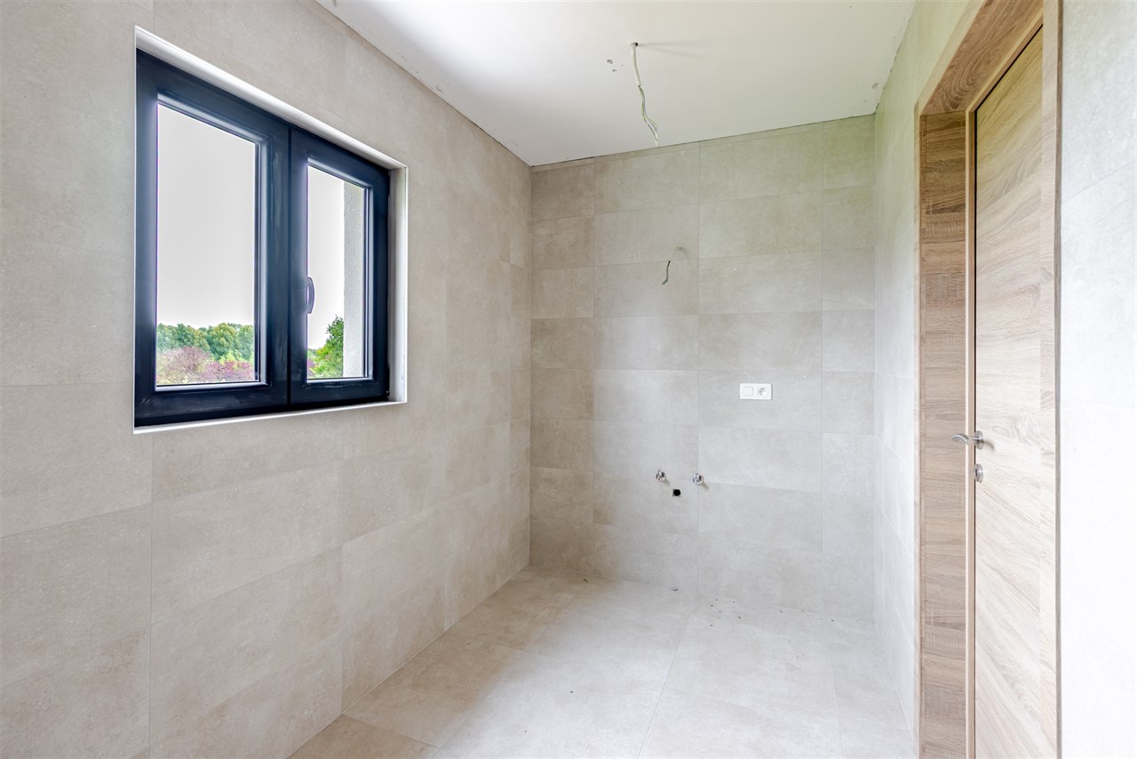 Op de eerste verdieping bevinden zich drie volwaardige slaapkamers en een stijlvolle badkamer, perfect ingericht voor een gezin. De zolderverdieping is reeds voorbereid om eenvoudig twee bijkomende kamers te creëren, wat de woning extra toekomstgericht maakt.