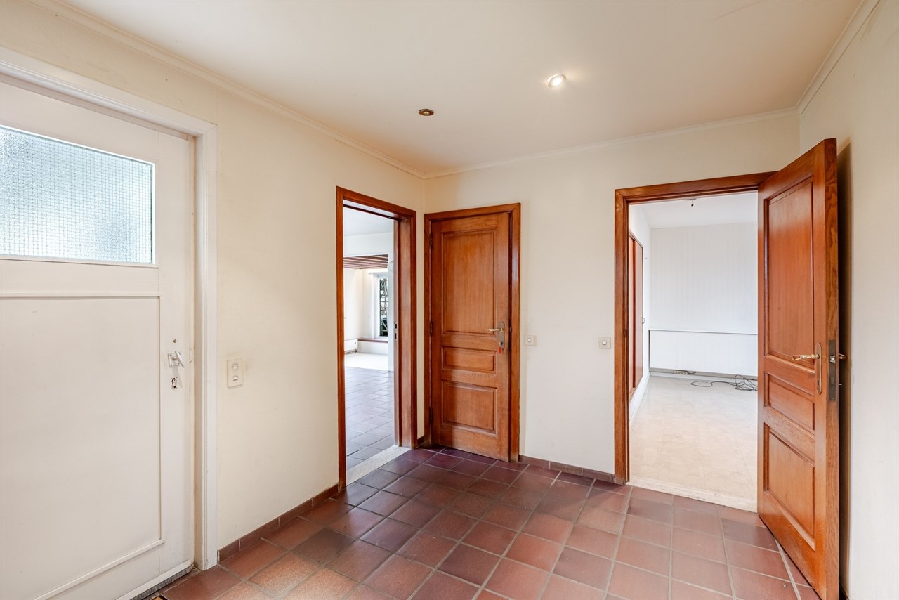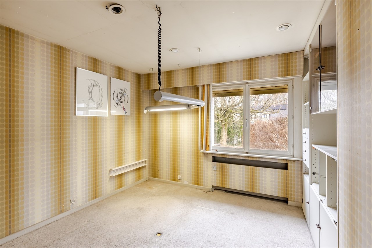 Via de inkomhal met gastentoilet bereikt u ook een aparte bureauruimte, ideaal voor thuiswerk of hobby. Op het gelijkvloers vindt u daarnaast nog een slaapkamer en een badkamer, wat de woning eveneens geschikt maakt voor gelijkvloers wonen.