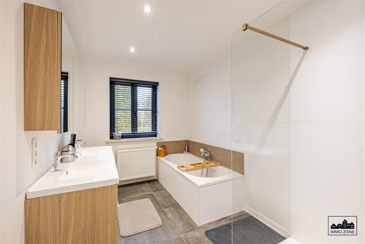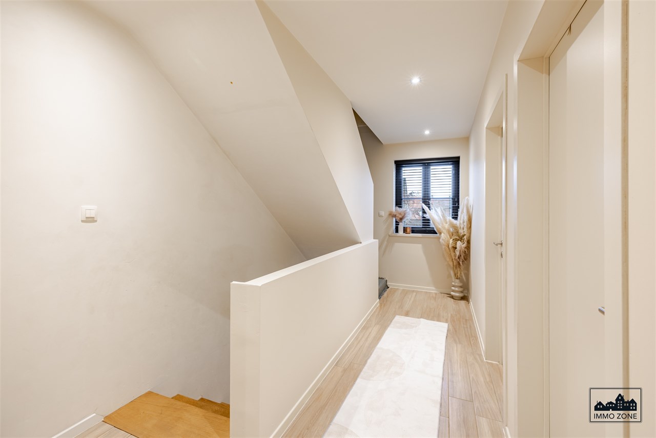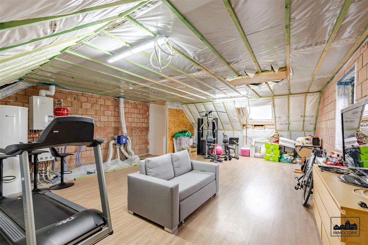 Op de eerste verdieping vindt u 3 ruime slaapkamers, waarvan één met ingebouwde dressing, een grote badkamer met bad en inloopdouche, en een apart toilet. Via een vaste trap bereikt u de ruime zolder die, mits afwerking, perfect kan dienen als 4e grote slaapkamer, mancave of hobbyruimte.