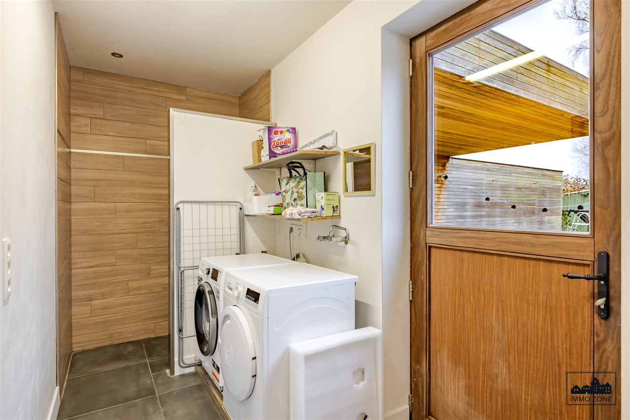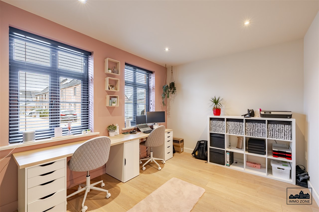 Naast de leefruimte bevindt zich een lichtrijke bureauruimte, ideaal voor thuiswerk of zelfstandige activiteit. Verder is er een aparte garage met wasplaats en aparte douche.