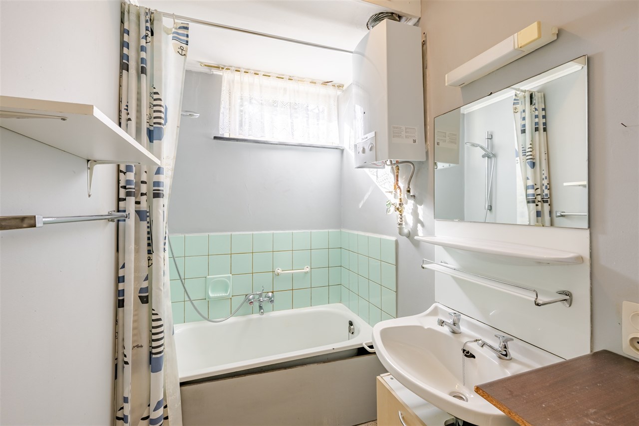 Op het gelijkvloers kom je binnen via de inkomhal met gastentoilet. Verder vind je een lichtrijke woonkamer met aansluitend de keuken en badkamer. Vanuit de keuken is er toegang tot de tuin.