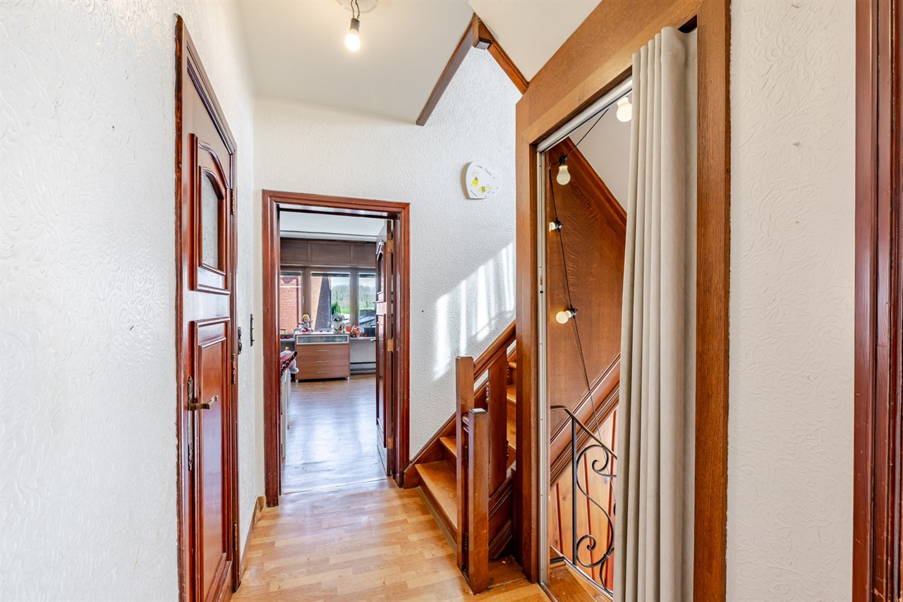 Op de eerste verdieping bevinden zich drie volwaardige slaapkamers en een badkamer. De dakverdieping werd verder ingericht met nog twee bijkomende slaapkamers, waardoor de woning in totaal vijf slaapkamers telt. Dankzij deze ruime indeling is de woning ideaal voor grotere gezinnen of voor wie graag extra kamers ter beschikking heeft voor bureau, hobbyruimte of logeerkamers.