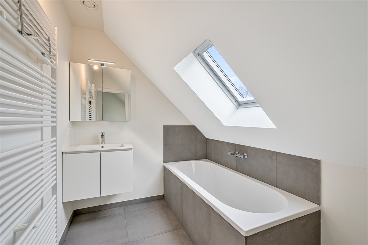 De eerste verdieping geeft plaats voor twee slaapkamers en badkamer voorzien van douche, dubbele wastafel en toilet. De zolderverdieping is ingericht met slaapkamer en badkamer voorzien van ligbad en wastafel.