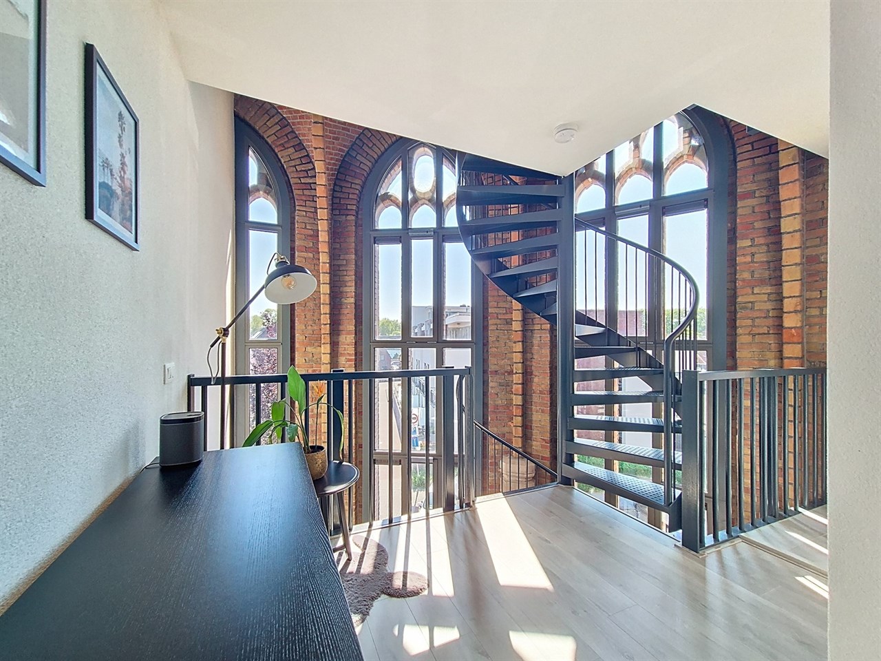 De elegante draaitrap verbindt alle verdiepingen, die telkens open zijn met de vide, wat zorgt voor een bijzonder ruimtelijk gevoel. Op de eerste verdieping bevindt zich de sfeervolle woonkamer. Stel u voor hoe u hier op een zomeravond ontspannen tv kijkt, terwijl uw blik af en toe afglijdt naar de prachtige gewelven van de nabijgelegen kerk.