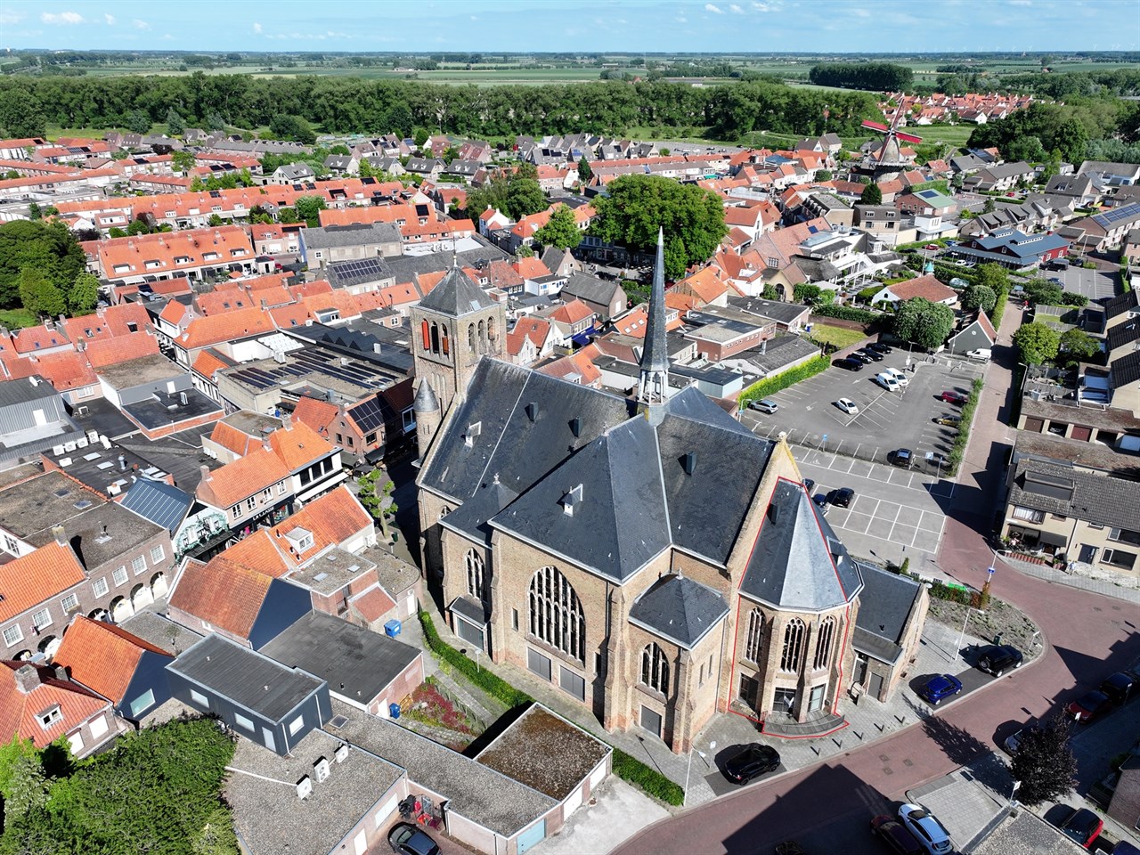 Op de derde verdieping bevindt zich de huidige slaapkamer, waar het hoge plafond en de authentieke sfeer opnieuw zorgen voor een bijzondere beleving. Het zicht op de karaktervolle details van de kerk maakt van deze kamer een idyllische plek om tot rust te komen.
