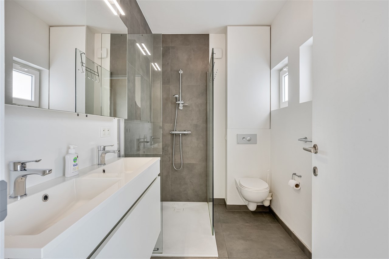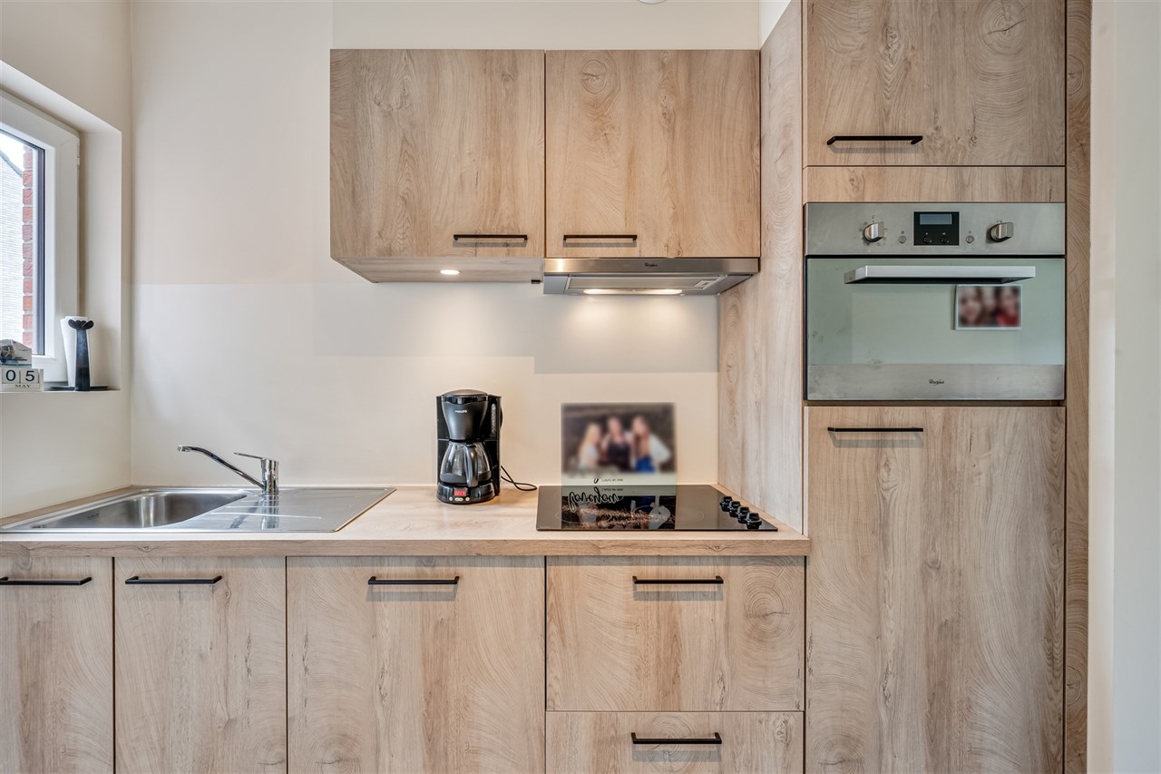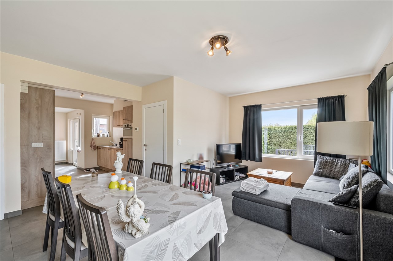 Op het gelijkvloers bevinden zich de inkomhal, de ingerichte keuken met eethoek, lichtrijke woonkamer, een berging of washok, en de ingerichte badkamer.