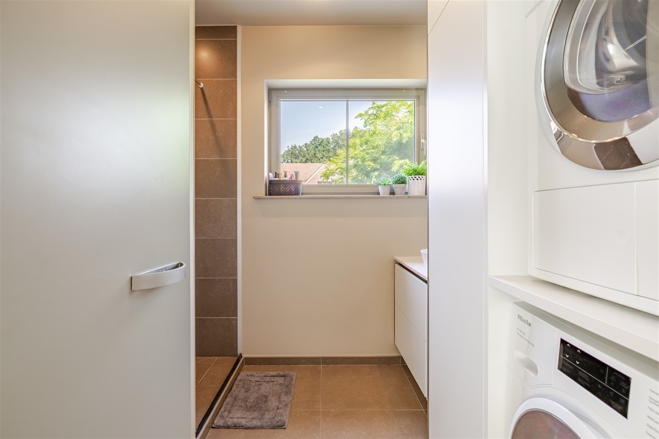 Op de eerste verdieping zijn er 3 slaapkamers. De masterbedroom beschikt over een dressing en aansluitend een dakterras. De badkamer omvat een ligbad, inloopdouche en dubbele wastafel. Er is ook nog een was- en doucheruimte en een apart toilet.