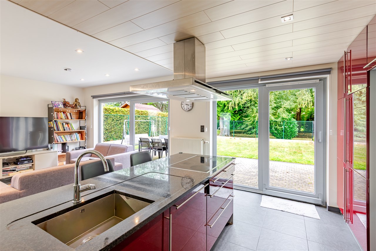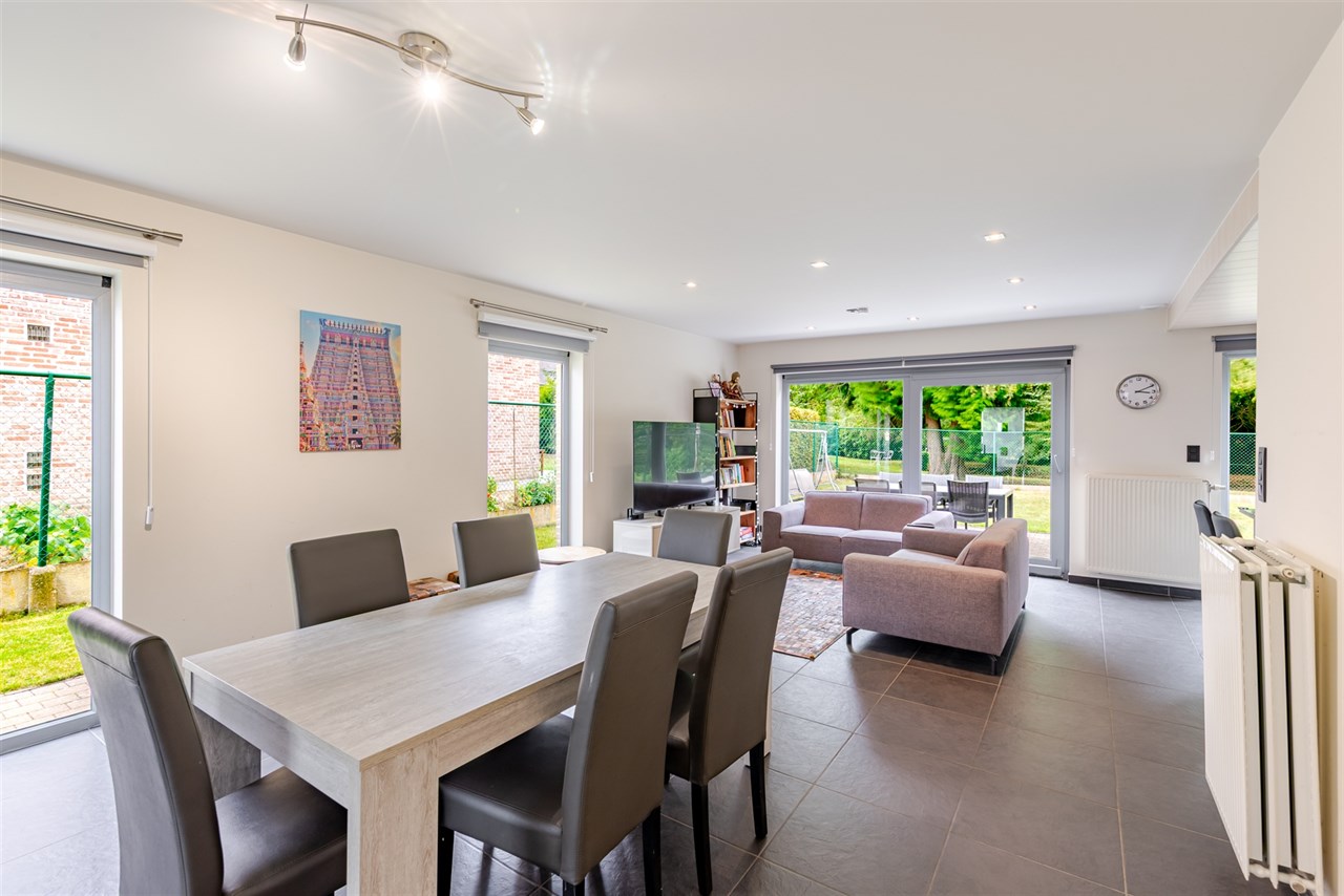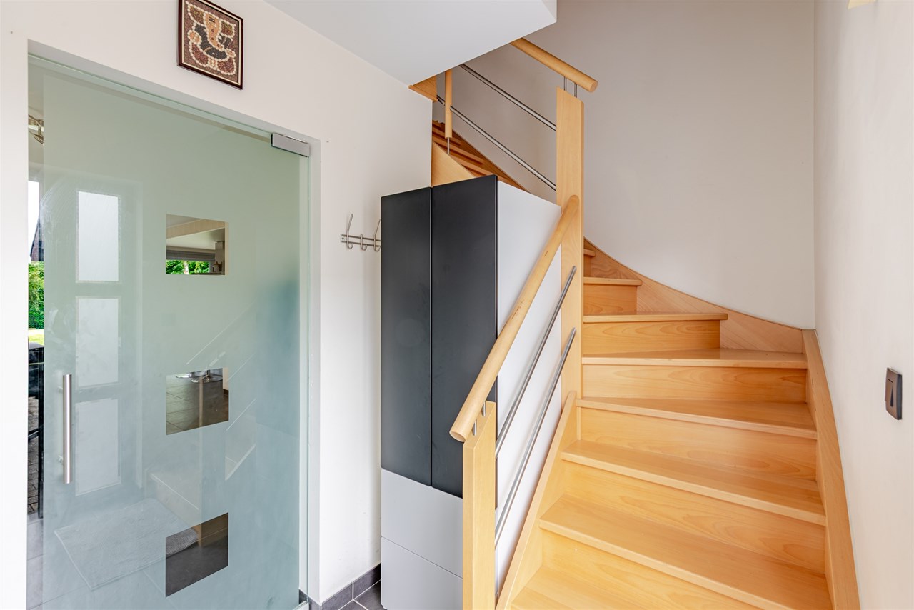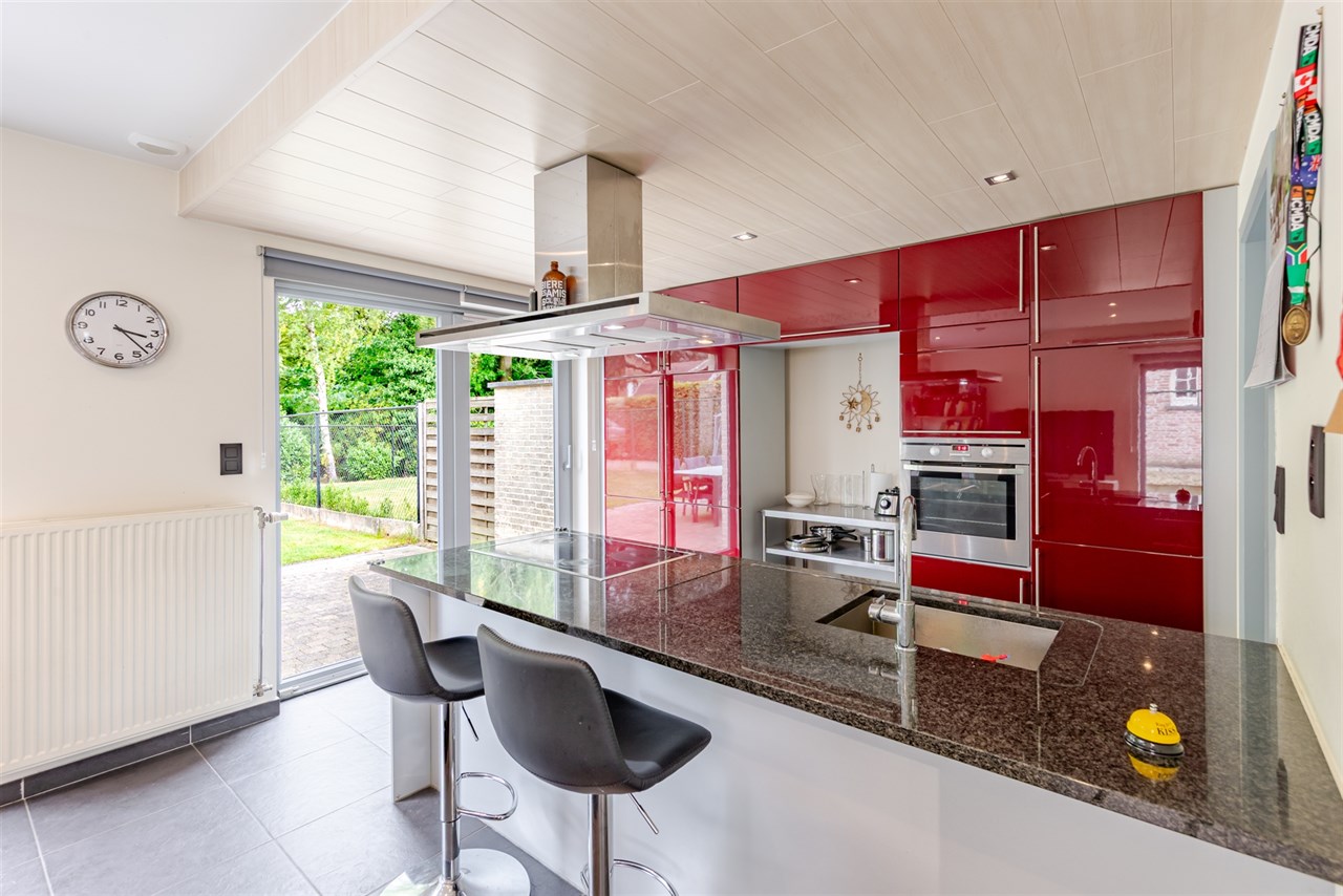 Bij het binnenkomen verwelkomt de inkomhal met apart toilet je meteen. De lichtrijke woonkamer met open keuken vormt het hart van de woning en geeft uit op een groot terras en een aangename tuin. De inpandige garage zorgt voor extra praktisch comfort. Achter de woning strekt zich een tuin met vijver uit, waardoor je geniet van een prachtig groenzicht en een oase van rust.