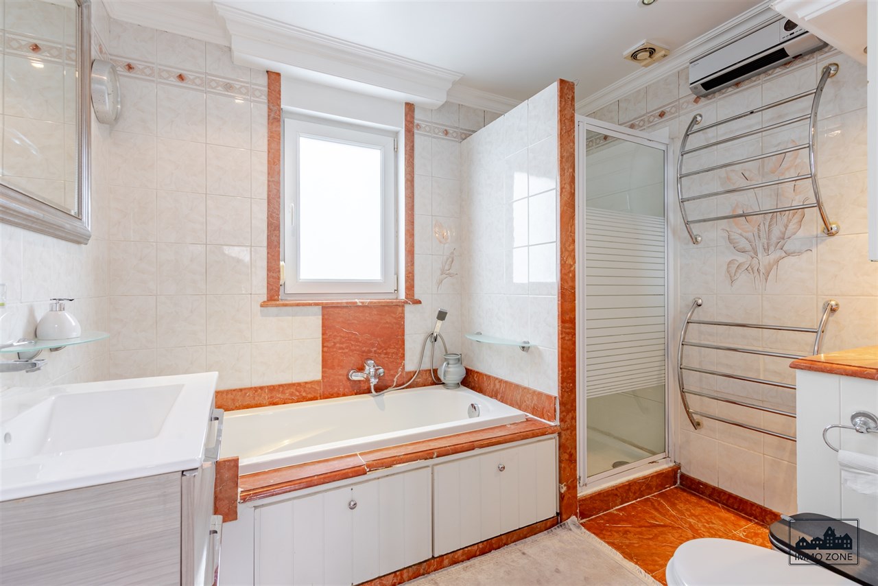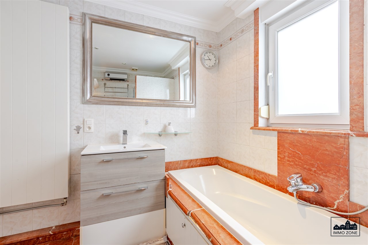 De woning beschikt over twee badkamers, waarvan één met ligbad en een aparte douche en een andere met douchefunctie, wat zorgt voor een aangename start van je dag. De lichte en luchtige woonruimtes zijn perfect voor ontspanning, met een gezellige woonkamer in parketvloer die baadt in natuurlijk licht dankzij de grote ramen, wat een uitnodigende sfeer creëert.