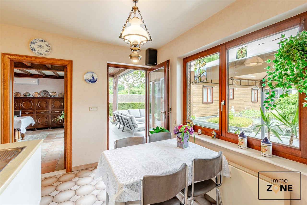 Achter de woning vindt u een instapklare chalet die kan dienen als aparte woonst. U vindt hier een leefruimte, keuken, badkamer en slaapkamer met voldoende bergruimte.