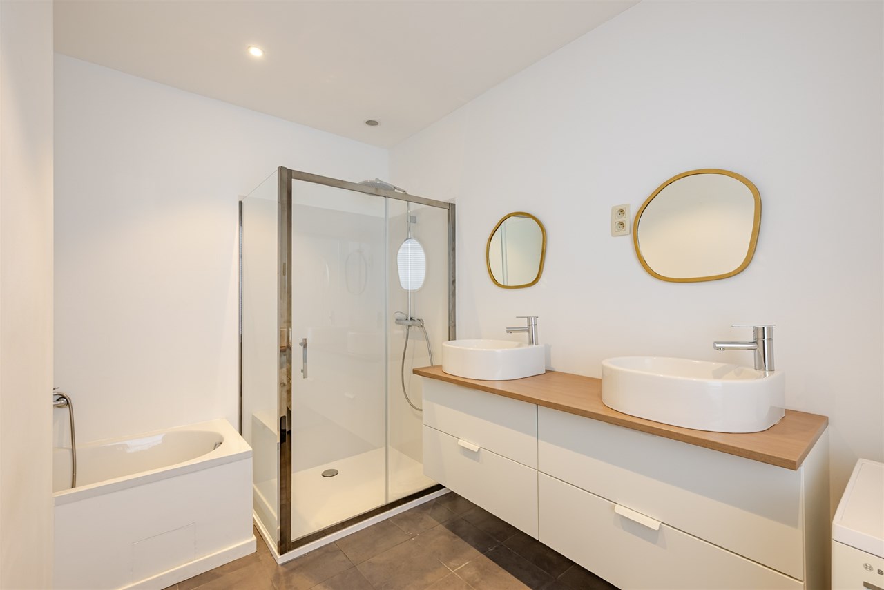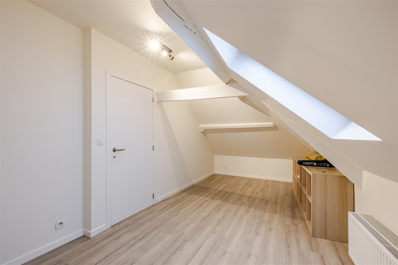 Dit mooi ingerichte appartement van 121m² bevindt zich in het centrum van het pittoreske Moorsel, op wandelafstand van scholen, horeca, winkels en openbaar vervoer. Het appartement bevindt zich op de eerste en tweede verdieping van een gebouw met slechts 3 entiteiten (geen syndicus). Via de inkomhal op het gelijkvloers leidt een trap naar de inkomdeur van het appartement. Van daar krijgt men de toegang tot een ruime en lichtrijke woonkamer met parketvloer, en een ingerichte keuken met ingebouwde ijskast, oven, vaatwasmachine en gasfornuis (allen van het merk Whirlpool). Via de hall krijgt men toegang tot een eerste slaapkamer (eventueel als bureau te gebruiken), een apart toilet en een ingerichte badkamer met nieuwe instapdouche, ligbad, dubbel badkamermeubel en aansluiting voor een wasmachine. Het zeer grote en zonrijke terras is een absolute troef van dit appartement. Op de tweede verdieping bevinden zich nog 2 ruime slaapkamers en een technische ruimte met de gaswandketel. Het appartement is eveneens voorzien van een private autostaanplaats buiten. Kan bemeubeld verkocht worden. Elektriciteit 100% conform tot 2046. EPC 219 kWh/m² (label C). Dubbel glas aanwezig. Het appartement is asbestveilig. Topper!