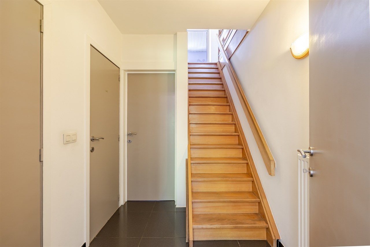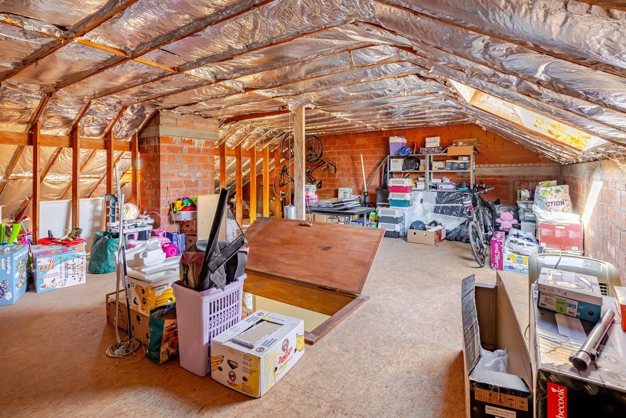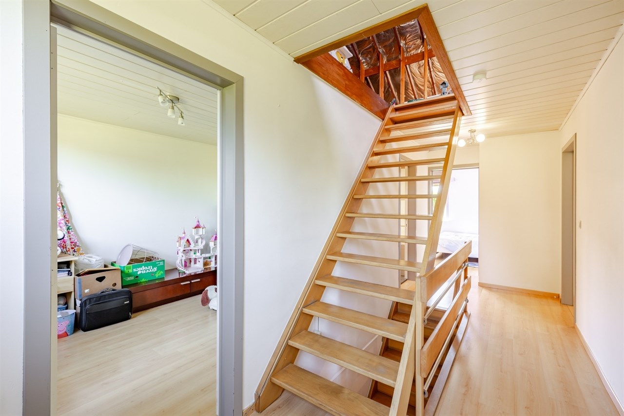 Er is een vaste trap die naar de zolder leidt. Deze is mogelijks in te richten als kamer.