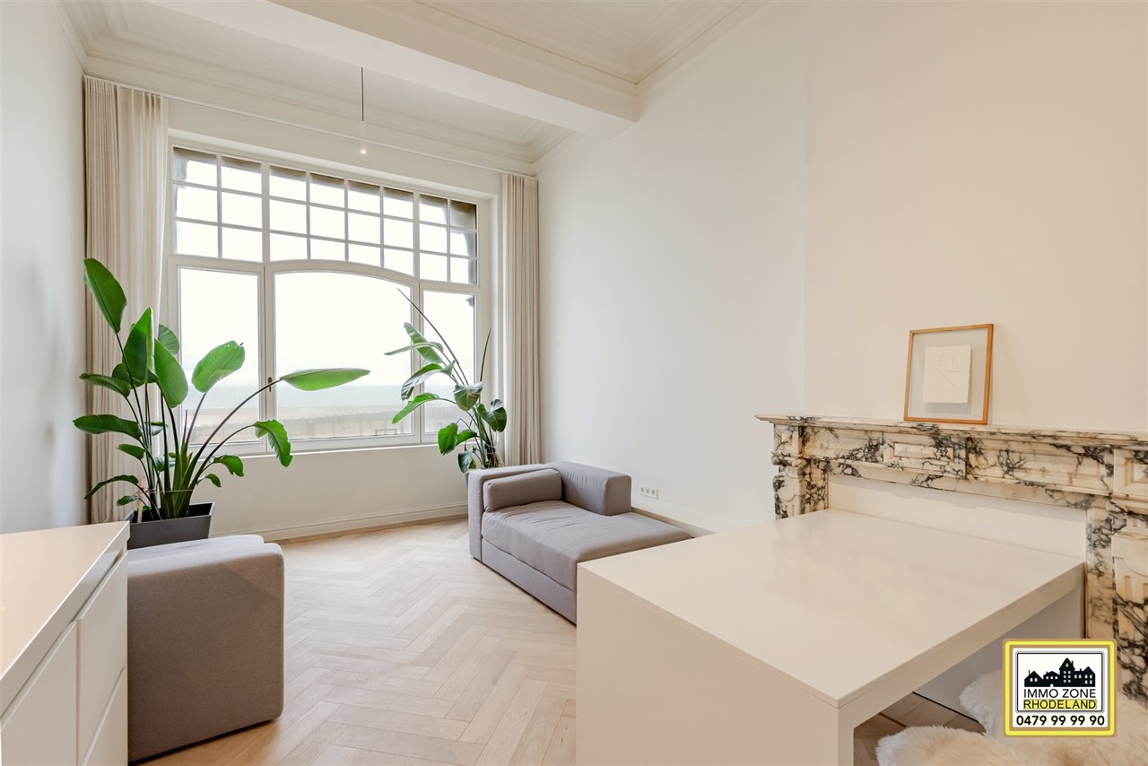 "ABSOLUTE TOPPER" - Afspraak ENIGE BEZOEKDAG ENKEL telefonisch via Randy Remue op 0479/ 99. 99. 90, meer info via Facebook "Remue Randy" - LIKE de pagina en blijf op de hoogte van alle nieuwe woningen. De stukken van de woning zijn te consulteren op www.immo-zone.be. In de geklasseerde Villa Victoria op de Zeedijk van Oostende vinden we dit subliem appartement met zeezicht terug. Het appartement werd volledig gerenoveerd met respect voor de authentieke elementen.De visgraatparket, sierlijsten en marmeren schouw dragen stuk voor stuk bij tot de stijlvolle en tijdloze uitstraling. Indeling: Bij het binnenkomen bereiken we meteen de lichtrijke leefruimte met open keuken, vanwaar u ten volle kunt genieten van het adembenemende zicht op zee. Verder hebben we nog het aparte gastentoilet en de slaapkamer met ensuite badkamer voorzien van inloopdouche en lavabo. Dit appartement geniet het exclusieve genot van het terras en de aansluitende groene strook - een ideale plek om in alle rust te ontspannen. Mogelijkheid tot aanschaffen van een berging. Dit appartement is een ABSOLUTE TOPPER voor starters, investeerders of mensen op zoek naar een buitenverblijf aan zee.