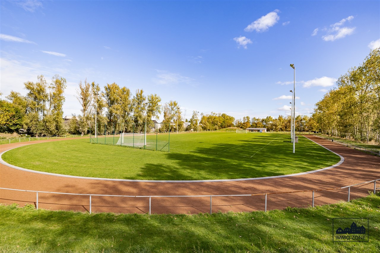 Extra troeven zijn de energiezuinigheid, de reeds afgewerkte tuin met terras, afsluiting en voorbereiding voor een robotmaaier. De woning ligt in een hedendaagse woonwijk met dorpsgevoel en een grote binnentuin die rust en groenbeleving biedt. Op wandelafstand vind je Stenedorp, winkels en horeca, terwijl Sportpark De Schorre letterlijk je achtertuin vormt. Een afzonderlijke garagebox kan optioneel worden bijgekocht voor €25.000.