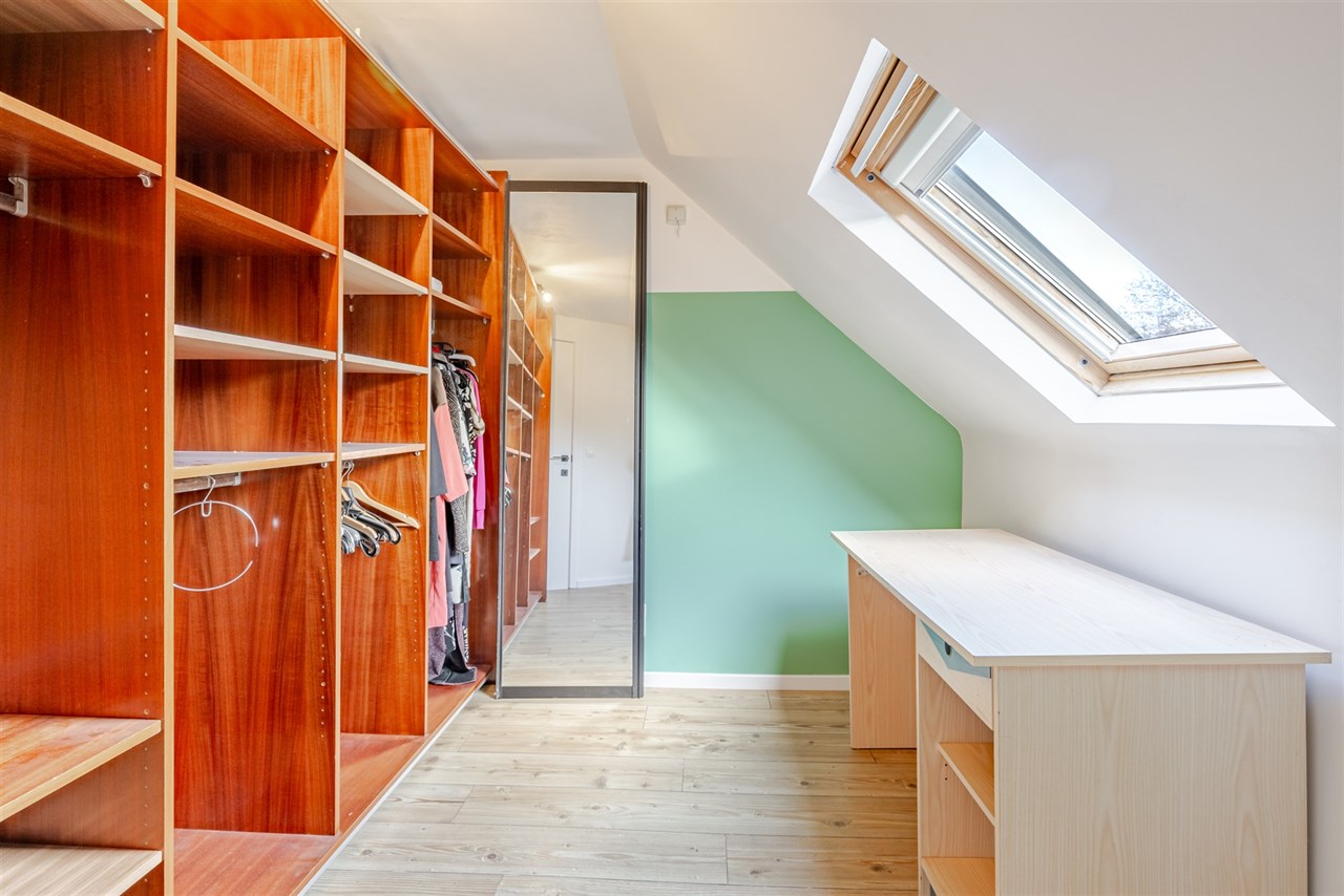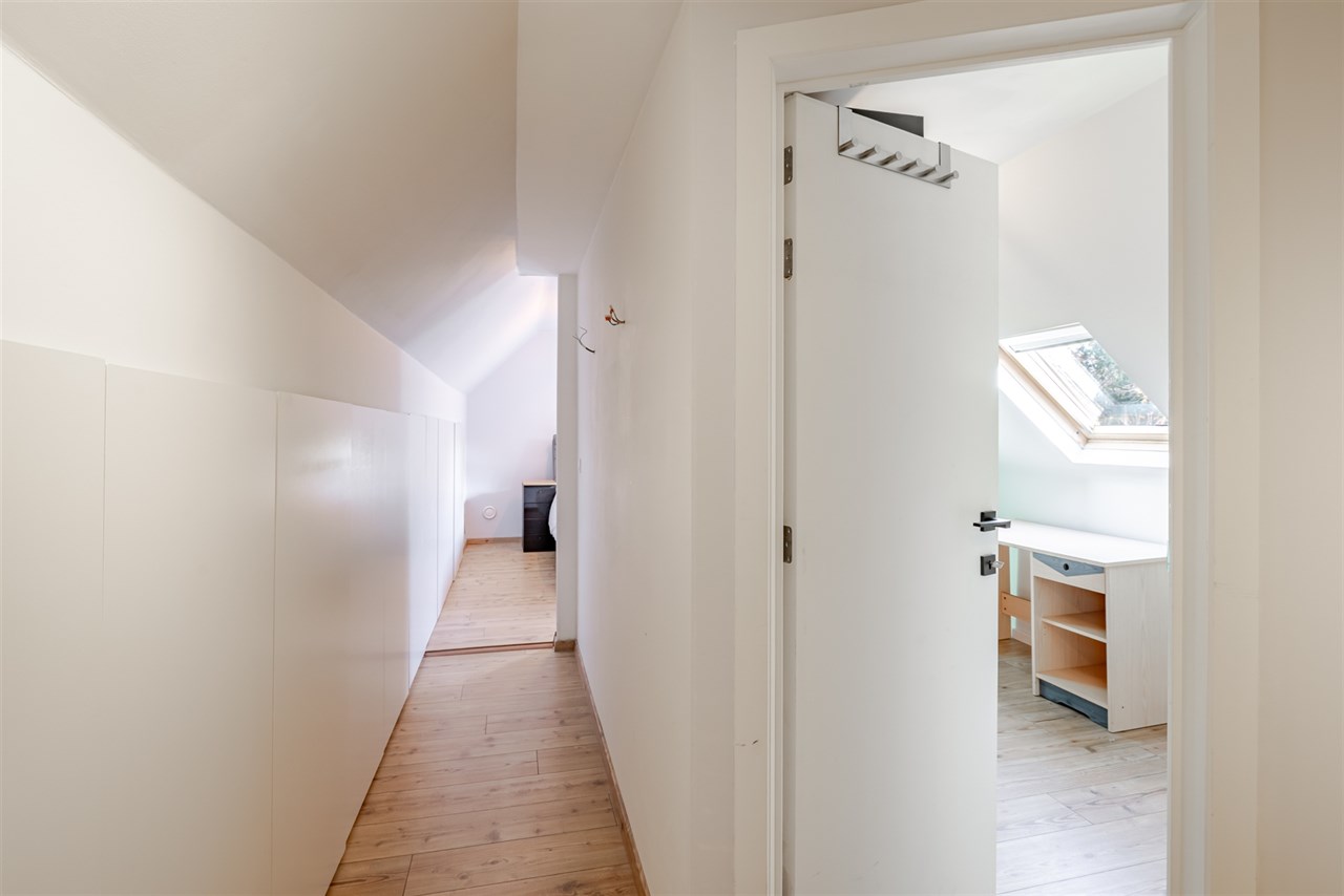 Indeling: ruime leefruimte met open keuken die vernieuwd werd in 2022 en voorzien is van een oven, kookplaat, frigo en vaatwasser. Aansluitend is een praktische berging. Verder vinden we gelijkvloers al een eerste slaapkamer, de badkamer die voorzien is van een dubbel badkamermeubel en inloopdouche, een berging/ wasplaats en een apart toilet. Op de eerste verdieping vinden nog een slaapkamer met ingebouwde kastenwand en een ruimte die kan dienen als bureau of dressing.