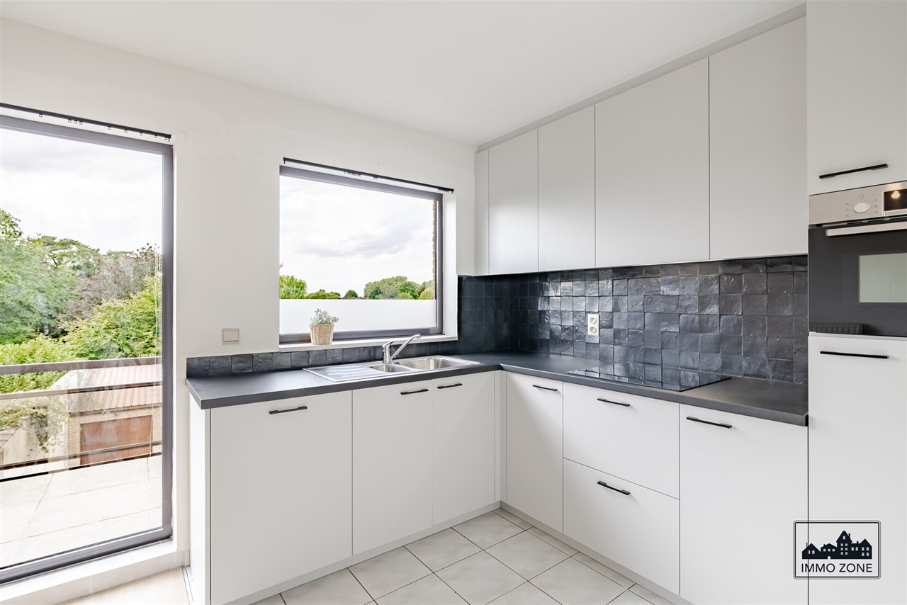 Bij het binnenkomen via de ruime inkomhal, komt u terecht in de lichtrijke leefruimte met open keuken, die volledig is uitgerust met de nodige toestellen. Aansluitend vindt u een aangenaam terras waar u rustig kunt genieten van de zon.